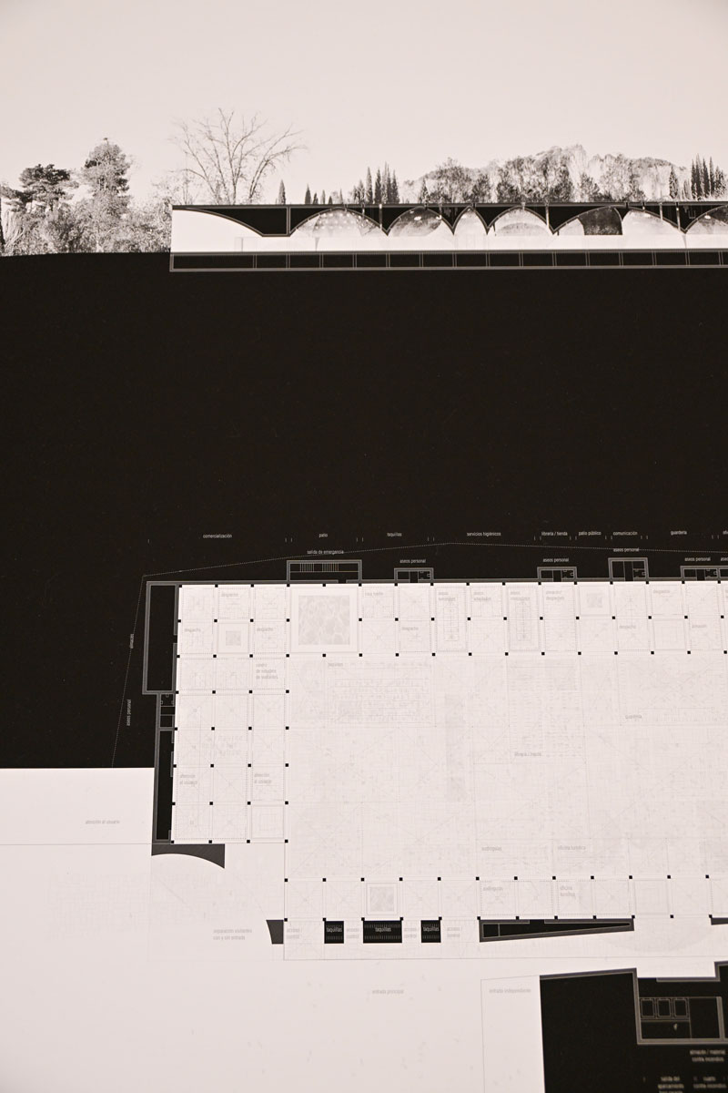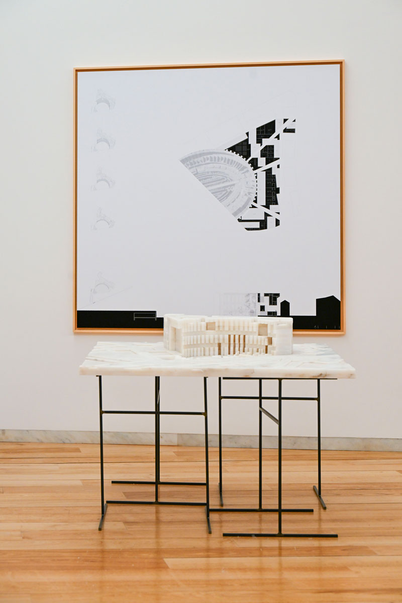 Expor arquitectura num museu constitui, necessariamente, um confronto com aquilo que nunca se poderá mostrar por completo: o edifício. E expor arquitectura num museu essencialmente dedicado à arte contemporânea acrescenta uma camada adicional de complexidade, dado que o público de um Museu de Arte Contemporânea difere, em parte, do público de um Centro de Arquitectura. Da conjugação destas duas premissas resultam duas circunstâncias: por um lado, é imperioso lidar com a ausência do edifício; por outro, é necessário reconhecer que os elementos expostos terão sempre uma escala distinta da do objecto real.