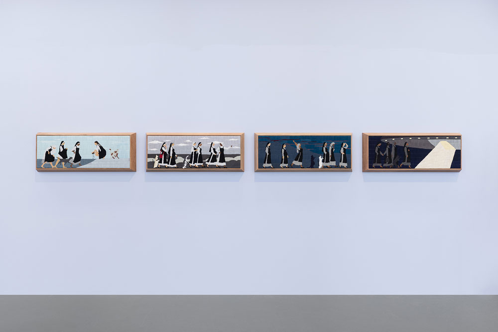 AR: Se a pergunta é sobre processo, sim, são processos muito diferentes. Mas o meu interesse pelo têxtil não vem tanto de um fetiche pela fibra ou pelos materiais. Eu penso sobretudo em termos narrativos e imagéticos, e é nesse sentido que me relaciono com as tapeçarias de forma muito semelhante ao vídeo: estou a construir imagens que carregam narrativas.