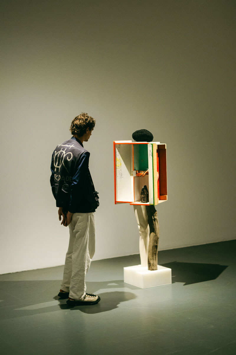 Outras vezes tecidos lado a lado, dos pólos anteriormente opostos, emergem esculturas por meio dessa inflexão mútua, compondo um espaço de estranha assemblage. Novas configurações emergem de uma escolha de materiais e alegorias, escolha esta que confere ao espectador espaço ao mesmo tempo para a o estranhamento, a sugestão e o reconhecimento.