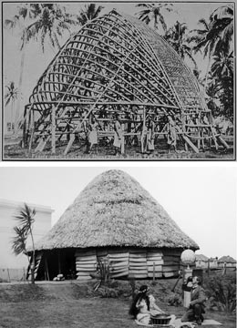 Esta diferença de perspectivas pode ser também verificada na maneira como a concepção, a produção e a recepção da arquitectura é influenciada pela sua leitura a partir de contextos globais ou num enquadramento mais local. O caso das exposições (coloniais, mundiais, universais, etc.) ilustra bem uma situação em que se processa uma migração e um deslocamento de identidades, onde a arquitectura serve de veículo à construção de uma performance de identidade. A apresentação por Tina Engels-Schwarzpaul [7] das sucessivas representações, ao longo do último século, da fale, a casa típica da Samoa, em exposições internacionais realizadas na Europa e, muito recentemente, num parque de recreio e lazer na Alemanha, demonstra como se processou uma transferência do lado tectónico da construção para a sua componente cenográfica. Este aspecto vem chamar a atenção para a necessidade de repensar leituras do Regionalismo focadas primariamente nas questões materiais, de forma, de tectónica. Estas leituras deverão passar a considerar também os processos e os acontecimentos que deram origem à construção; os agentes envolvidos na definição daquelas formas, daquela tectónica, deverão assim ganhar uma posição mais central, e reivindicar para as questões cenográficas uma função performativa essencial.