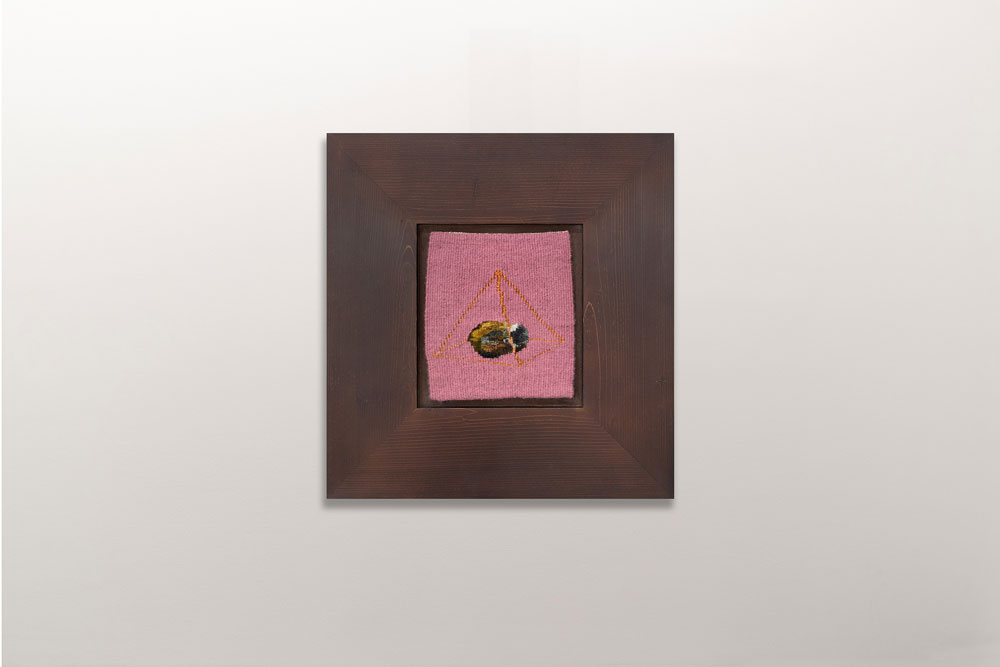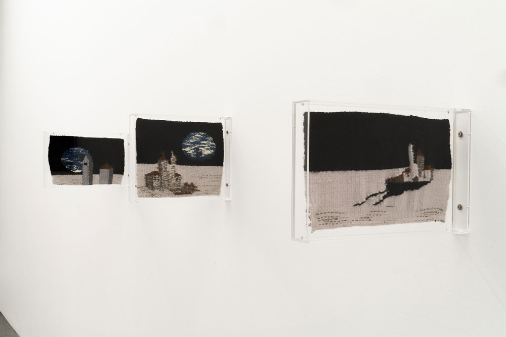 O trabalho em tapeçaria é mais maquinal, no sentido em que consiste em preencher um desenho com linha. Gosto dessa sensação de máquina e até fantasio que o que faço não difere muito de um computador a gerar uma imagem, só que infinitamente mais lento. Ao mesmo tempo, a tapeçaria exige do corpo atenção e destreza, mas deixa espaço à mente para divagar. Por vezes também surgem ideias novas enquanto estou a tecer ou bordar. O vídeo é quase o oposto: requer foco mental absoluto e não dá essa margem de divagação. A diferença entre os dois processos é precisamente o que me atrai, porque cada um abre um tipo distinto de envolvimento com a narrativa. A nível de produto, vejo estes dois aspetos da minha prática como espelhos narrativos que se co-influenciam e completam.