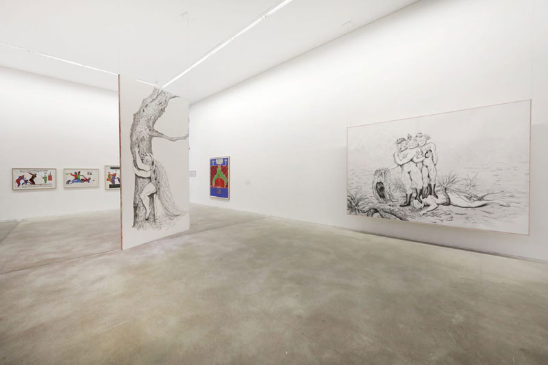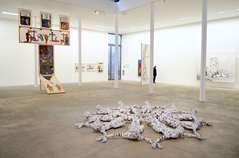 Na Anti-Igreja (KW), obras anódinas coabitam com os surreais desenhos erótico-transhumanistas de Florencia Rodriguez Giles. No chão, jaz uma escultura de Young-Jun Tak: 10 Cristos recobertos por folhetos anti-LGBTQI de uma seita evangélica coreana numa referência explícita à sua intolerância para com esta comunidade. Curiosamente este agrupamento religioso foi acusado, tal como os clubes gay de Seoul, de contribuir fortemente para a transmissão do vírus do Covid 19 na Coreia do Sul. Os trabalhos em papel do brasileiro Pedro Moraleida Bernardes conjugam, de forma dinâmica, influências de Arthur Bispo do Rosário, Antonin Artaud e Rainer Werner Fassbinder. A energia, reforçada pela disposição das imagens em forma de crucifixo, é palpável, mas o poder transformacional desta linguagem visual anticristã fica aquém das expectativas suscitadas pelas grandes referências. Numa das caves, uma instalação barroca e dramática de Carlos Motta estabelece uma ponte entre um motivo de Caravaggio e as práticas de bondage e sadomasoquismo. Num andar superior, Zehra Doğan descreve o destino dos detidos curdos na Turquia em Xêzên Dizî [The Hidden Drawings], 2018–20. Desenhos que esta artista e ativista realizou na prisão onde foi detida por motivo de "propaganda terrorista.” Em "Who is Afraid of Ideology? (Part 3) – Microresistances (2020)", Marwa Arsanios remata um périplo por várias regiões do mundo com um vagaroso relato da luta de uma pequena comunidade de Tolima, Colômbia, que tenta recuperar as suas sementes tradicionais contra a vontade das grandes multinacionais do setor agrícola. A instalação de vídeo They Sing, They Dance, They Fight (2020) da artista peruana Elena Tejada-Herrera combina treinos de autodefesa de raparigas, mulheres trans e mulheres de todas as idades com estética pop numa empolgante celebração do empoderamento feminino. Na Galeria do DAAD, destaque para o vídeo da performance The Santa Claus Army realizada em 1974 pelo Solvognen (The Sun Chariot) Theater Group em que um anárquico exercito de Pais Natais desafia as convenções da sociedade de consumo.