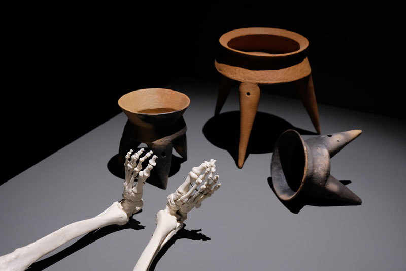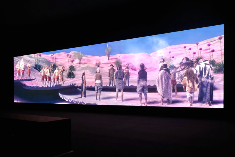 A teoria “Hipótese de Gaia,” agora no 52.º aniversário, serviu como ponto de partida temático para a 4.ª edição da Bienal de Arte de Bangkok (BAB), intitulada Nurture Gaia. Avançada por James Lovelock em 1972, a teoria de Gaia postula que o Planeta Terra funciona como uma entidade viva e auto-reguladora. A exposição reúne obras de 76 artistas (inter)nacionais que trabalharam a questão ambiental numa perspectiva alargada. As obras reflectem as preocupações dos artistas, que narram histórias de destruição ou de preservação ecológica, e perguntam como avançar em direcção a um planeta mais sustentável. A mensagem de sustentabilidade foi reforçada através da decisão curatorial de integrar artefactos culturais tailandeses, entre os quais arte contemporânea na exposição. Além disso, a exposição foi apresentada em templos e museus de Bangkok, onde espólios antigos foram justapostos a trabalhos contemporâneos. Esta combinação desafiou as fronteiras entre arte e cultura características do mundo da arte, e revitalizou a forma como olhamos para representações da natureza no passado. A questão cultural é também realçada através de temas do Budismo, a religião de estado do reino da Tailândia. A obra Breathing Flower (2012) do artista sul-coreano Choi Jeaong Hwa – uma flor de lótus gigante insuflável que abre e fecha mecanicamente – recorda o poder da respiração, considerada a essência da vida. (FIG.1) Ao mesmo tempo, reforça a intenção expositiva de Nurture Gaia: a flor de lótus é extremamente valorizada no Oriente, porque representa o milagre da criação de beleza em ambientes poluídos. Do mesmo modo, a integração de seis pinturas Thangka, uma arte religiosa do Tibete, é altamente significativa. Produzidas pelo artista russo Nick Dudka, um praticante e estudioso desta arte e de filosofia budista há trinta anos, a sua exposição numa bienal de arte eleva práticas artísticas canónicas ao domínio da arte contemporânea. (FIG.2) As obras Ushnishavijaya e Three Long Life Deities (2009-10) demonstram como um exercício de ensino teológico continua a ser uma tradição viva e respeitadora da natureza devido ao uso continuado de materiais naturais (algodão, seda, pigmentos naturais e ouro, entre outros). Artistas como a holandesa Mella Jaarsma também contribuíram para a afirmação de práticas ancestrais no contexto da arte contemporânea. Em colaboração com o mestre Agus Ongge, nativo da Papua indonésia, o duo apresentou Barkcloth-Dark Cloth (2024), uma instalação que recupera o uso de casca de árvore como tecido e ornamentado com pinturas de pigmentos naturais daquele ecosistema. Esta prática antiga foi vítima de apagamento cultural e opressão desde o período colonial, e resultante da repressão por parte de missionários católicos nos estilos de vida indígenas. A obra aborda estas questões de legitimidade, ao mesmo tempo que comenta a actual mercantilização do tecido de casca de árvore pela indústria de souvenirs turísticos, que transformou esta arte num exercício de representação de paisagens distante do seu vocabulário tradicional. A artista maori da Nova Zelândia, Lisa Reihana, também promoveu o conhecimento e a cultura indígenas. Na sua animação vídeo Groundloop (2022), que cita o provérbio maori “Ka mua, ka muri” (caminhar para trás em direcção ao futuro), sugeriu a importância de incorporar valores ancestrais como base para a construção de um futuro harmonioso (FIG.3). As louças de barro evocam património imaterial e escavações arqueológicas. No entanto, a arte contemporânea possui uma grande quantidade de artistas que trabalham com estes materiais. A artista tailandesa Pim Sudhikam concebeu a instalação Conversation with a Potter (2024), em que recuperou os famosos vasos tripé do povo Ban Kao, enaltecendo este património com cerca de 4.000 anos através da recuperação de antigas técnicas de fabrico de barro. Para tal, a artista recolheu barro do subsolo de Bangkok, especialmente do centro financeiro One Bangkok (onde expôs o seu trabalho) e de estaleiros do metro da cidade. (FIG.4) A sua intenção é a de criar um vínculo entre a cidade de hoje e a sua origem mineral, já que, como outras cidades mundiais, Bangkok foi fundada sobre terras férteis que se tornaram obscuras (para os humanos) devido à urbanização.