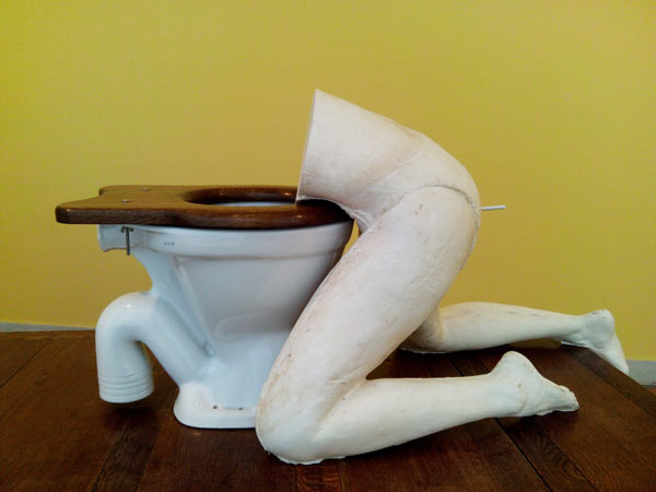 Os cigarros colocados nos orifícios das peças, (desde o abdómen superior até aos membros inferiores) são uma provocação propositada da artista, que lembra terem sido colocados ali para o público, ainda que não sejam do agrado deste.
