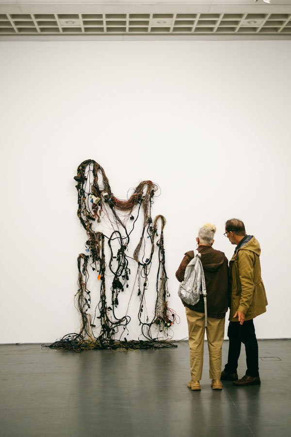 Em última instância, o trabalho de Alexandra Bircken convoca-nos ao contemporâneo e à sua estética de montagem, caracterizada pela fricção entre tempos, corpos e matérias. O tecido, eventualmente, torna-se pele, e o cabo, numa espécie de nervo, em uma continuidade que dissolve as fronteiras entre o humano e a máquina, o natural e o fabricado. Nesse ponto, o pensamento de Donna Haraway pode nos oferecer guarida: como os seus ciborgues, as esculturas de Bircken habitam um território de interpenetrações, onde a forma é sobretudo uma estranha costura. A artista trabalha nesse limiar, nesse lugar de transição inefável que só a arte consegue penetrar — com sorte, como neste caso, por meio de alegorias significativas. É assim, nessa atmosfera de Unheimlich, estranho familiar, que ficamos a pairar.