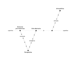 PERSPECTIVA E EXTRUSÃO. UMA HISTóRIA DA ARTE (PARTE 4 DE 4)FILIPE PINTO2013-12-20PERSPECTIVA E EXTRUSÃO EXTRUSÃO E POLÍTICA (Extrusão, como aqueles livros da infância, que com o virar de uma página constroem castelos, princesas e bosques, prédios, casas, toda uma aldeia; constroem-nos no preciso espaço livre (da leitura) – no ar vazio que paira sobre a página dupla aberta –, no espaço do leitor e espectador); ou, extrusão como aquela da barriga nos meses de gravidez. Quando cavamos, criamos ao mesmo tempo um montículo com o mesmo volume de terra que retirámos do buraco no chão; trata-se de uma equação exacta – a mesma quantidade de terra que retiramos com a pá aparece ao lado do buraco; vemos isso acontecer nas obras nas ruas, nas minas e cemitérios; quer dizer, a cova e o montículo estão ligados por uma lógica de causa e efeito, uma coisa origina a outra; não é possível um sem o outro. Até aqui fomos conduzidos por um movimento de escavação, seguido de uma emergência até à superfície. Embora os pontos por onde passámos e onde por vezes nos detivemos não estejam tão intrinsecamente ligados como a cova e o montículo, existe contudo uma ténue lógica entre, por exemplo, as primeiras tentativas à superfície do suporte – na rocha pré-histórica onde se gravaram os primeiros contornos dos animais –, e a busca posterior por uma representação mais consentânea com a realidade – uma imagem mais profunda –, até à realização da imagem perspéctica, potencialmente infinita, que possibilitou uma ilusão mais apropriada, e, finalmente, a negação de tudo isso, a superfície desiludida e exposta da arte abstracta. Estes dois movimentos de sentidos inversos, que duraram séculos e séculos – primeiro para lá da superfície e depois de volta –, apresentam, ainda assim, uma lógica perceptível, embora bastante diluída na história geral e emaranhada da arte. Já o movimento que agora aqui se ensaia – a extrusão, a tentativa das coisas artísticas se imporem para cá da superfície – não apresenta, à partida, uma ligação tão intrínseca com aquela escavação e posterior emergência. Se nas coisas da terra, uma cova dará inevitavelmente origem a um montículo, isto é, se uma escavação tem como consequência uma espécie de extrusão do terreno, nesta história esquisita da arte, perspectiva e extrusão são desconexos, sem relação entre eles; isto é, um não é a causa directa do outro. Da planura do suporte, da flatness, propomos agora um salto de cavalo, um movimento de cotovelo como no xadrez, para a frente e para o lado, e para cima enfim. A problematização da superfície pensada por Greenberg, apoiada no trabalho daqueles pintores (Rothko, Pollock, etc.), parecia ter um fim em si mesma; ao mesmo tempo, e em pública e publicada controvérsia com as ideias greenbergianas de fechamento crítico das disciplinas sobre si próprias, trabalhavam os minimalistas e artistas conceptuais, que, esses sim, poderão ser vistos como antecessores das tentativas políticas da arte; isto é, o minimalismo, a arte conceptual e o que mais directamente se lhes seguiu aparecem como antecedentes bem mais prováveis das propostas políticas da arte do que as obras limitadas à questão da sua própria superfície e extremidades. Sendo desigualmente discricionário, até aqui o que se fez foi isolar determinados acontecimentos da história da arte e, através deles, traçar uma linha recta, única, embora ziguezagueante; ou seja, um ponto de vista único. Se a arte renascentista, através da descoberta maravilhosa da perspectiva, desejava mostrar uma arte profunda, que puxava o espectador para o seu abismo, a arte política, ao contrário, pretende ter uma perspectiva positiva, para cá da sua superfície irreal, invadindo o espaço do espectador. Se a arte perspéctica puxa o espectador para o interior que engendrou (escavou), a arte política empurra-se para fora de si, até se constituir como obstáculo – interrupção – no espaço da vida contínua do espectador. Resumindo, o desejo de retratar o mundo (ponto 1) levou ao engendramento do espaço e distância na superfície fina e plana do desenho e da pintura – da representação (ponto 2); percebemos que, passados séculos nas profundezas das imagens, a atenção ao mundo real fez inverter a direcção escavadora das coisas artísticas – chegados ao abismo da perspectiva, os artistas como que olharam por cima do ombro para o mundo cá de fora; o questionamento da superfície tornou-se, no desenho desta história estreitíssima, um ponto conveniente e lógico (ponto 3a); partindo do mesmo plano superficial – zero de altura, nível do mar –, embora numa outra posição (ponto 3b), a arte inclina-se agora para a frente (ponto 4); de costas para a profundidade do seu passado, a arte já não fita apenas o seu olhar tentando assim captar a atenção de alguém, como o fazia Olympia; o movimento da arte que se quer política, proposto aqui como extrusão, isto é, da superfície da arte para o ar do mundo, deseja interromper, interferir, interpor-se, imiscuir-se enfim na vida real [xi]. Como pode a arte passar finalmente a alfândega da superfície? EQUÍVOCOS DA ARTE POLÍTICA Disse-se no início deste texto que é pela política que a arte se pode exceder, que pode transbordar para o campo da vida comum; isto é, será pela política que a arte poderá ter uma consequência directa na vida e mundo reais, poderá enfim influir fora do restrito sistema da experiência estética. A arte aproxima-se da vida pela via da política. Este parece ser um movimento vitalizador, revitalizador, como aquele primeiro mergulho do ano (ver citação referente à nota 18). Arte + Política = Vida (saúde) Contudo, esta denominação – arte política –, demasiado lata, sofre os inúmeros incómodos dos inúmeros equívocos na sua cada vez mais frequente e superficial utilização. Hoje, pa