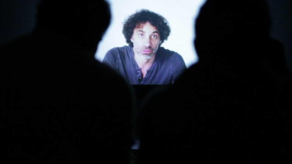 O AGORA QUE É LÁRITA XAVIER MONTEIRO2014-02-25É de longe, de muito longe que acompanhamos os nublosos conflitos do Médio Oriente. De longe, tão longe que o conhecimento mediado pelas imagens televisivas e os vídeos das redes sociais surgem casa dentro em situação quase ficcionada, quase inacessível. Como se os média perdessem precisamente essa justeza que é estar no meio. Entre a circunstância e o espetador. É de perto que o artista libanês Rabih Mroué acompanha a realidade da vizinha Síria. Mas é sobre a utilização, a narrativa e o poder dos instrumentos virtuais de comunicação que decide falar. A conferência-performance Pixelated Revolution [1] que apresentou em Serralves, exibe ao mesmo tempo que pensa os registos de acontecimentos em curso: a revolução Síria, os sírios, a morte. “Os Sírios estão a filmar a própria morte” Pixelated Revolution é uma palestra não-académica que estreou no P.S. 122 em Nova Iorque em 2012 e passou como projeto de instalação pela dOCUMENTA (13) de Kassel. Em Portugal, Mroué vem apresentando os seus trabalhos individuais e em dupla com Lina Saneh, desde Biokhraphia (2002), Who’s afraid of representation (2004), How Nancy wished that everything was an April Fool’s joke (2007), tendo também colaborado, em Yesterday’s Man (2007) [2], com Tiago Rodrigues para a companhia Mundo Perfeito. Todos se enquadram numa pesquisa sobre a representação do corpo-pátria libanês ou do corpo-estrangeiro em território de circunstâncias políticas problemáticas. A sua criação baseia-se na recolha de documentos e imagens pré-existentes, veiculadas pelos dispositivos de comunicação no espaço público. Talvez por isso tenha escolhido o discurso como modo eficaz de relatar essa experiência de reflexão. Mesa, cadeira, computador Apple MacBook, pequeno candeeiro, copo de água, folhas de papel impressas. Rabih Mroué entra de expressão séria no corpo descontraído. Senta-se na cadeira e inicia a leitura enquanto manipula as imagens e os vídeos projetados numa tela que ocupa todo o palco do auditório. Não deixa de ser curiosa esta desproporção entre a figura do intérprete-conferencista, ao canto, e a enorme tela que configura importância às ideias, imagens e vídeos comentados. E como se torna paradoxal que dos vídeos amadores que vai mostrando não restem senão caras pixelizadas, cuja identidade é diluída. Não identificada. A sangue-frio e com certa [e necessária] distanciação, o artista analisa o Facebook dos grupos revolucionários, incluindo vários vídeos amadores, tremidos e sem foque. É sobretudo “Double Shooting”, colocado online no Youtube, que nos obriga a ver. Frame a frame. Da habitual visualização rápida das plataformas sociais à análise exaustiva. Trata-se de um registo através da câmara de telemóvel de um homem que é atingido por um atirador quando percebe que está a ser filmado. Decerto não vemos o homem por detrás da câmara, embora possamos ouvir a sua voz. Anónimo. O olho da sua câmara viu o que depois se torna acessível à escala global na world wide web. O olho somos nós. Também não definimos os traços do assassino, ainda que todo o seu rosto – no frame super ampliado – se espalhe na tela gigantesca do auditório. Anónimo. No olho do furacão da civilização da imagem, estes vídeos destacam-se pelos seus elementos chocantes, perversos ou imprevisíveis. Muitas vezes tornam-se virais. Mroué quer tentar perceber, chegar à meta-narrativa. Portanto, recorre à metodologia dos cineastas dinamarqueses Vinterberg e von Trier que redigiram o Manifesto Dogma 95, colocando-o em paralelo com os modelos de filmagem dos revolucionários sírios: como filmar uma manifestação? Nesta guerra da imagem, ou guerra contra imagens, as câmaras móveis funcionam como armas de arremesso. Ainda que trémulas, permitem denunciar ao mundo fragmentos da violência praticada. Correm, errantes, são bípedes. Os homens e mulheres que as seguram testemunham a própria morte sem, no entanto, serem mártires. Sem que saibamos se o corpo-humano que está do lado invisível do corpo-máquina [implantado como prótese óptica, o telemóvel], sobrevive. Sabendo que alguém fez o upload daquele registo do corpo-máquina. Do outro lado, a estabilidade traduz-se nos tripés e nos aparelhos de alta resolução, símbolos da firmeza revestida do regime. Com momentos de uma lucidez crua, quanto incrivelmente irónicos [até cómicos, não fosse tudo tão trágico] a performance instiga mais do que esclarece. Aponta-se dos factos: a morte de mais de 130 mil sírios e milhões de refugiados, mantendo-se a guerra civil que mistura revolucionários com islâmicos fundamentalistas, iranianos, curdos, libaneses do Partido Hezbollah,…contra a milícia e o regime de Bashar al-Assad. Do olho da vítima ao olho da câmara, do olho do assassino ao olho da sniper há uma bala disparada. Faz um ricochete. Aponta-se diretamente ao espetador. “É muito provável que atrás desta janela estivesse sentado um snipper” Este agora de lá também se torna mais perto pelo que traz a exposição Preso por Fios [3] da artista tunisina Nadia Kaabi-Linke, com curadoria de Isabel Carlos e em exposição no CAM-Gulbenkian. Comovente e sofisticada na execução dos diversos suportes e materiais e na exploração do seu potencial teórico, a artista evoca perturbações do traçado histórico entre povos e culturas. Falando da simbologia dos israelitas e judeus escondida no belíssimo ready-made Smooth Criminal, do deslocamento imagético da instalação de vídeo Non e do apagamento da memória em Tunisian Americans. Neste contexto há uma obra recente que me prende a atenção. Snipers (2014) mostra a impressão de uma parede de Berlim – cidade onde a artista atualmente vive e trabalha. Marcada de balas, alude ao passado da II Guerra Mundial e simultaneamente enuncia a história recente da Tunísia. Na sinopse tam