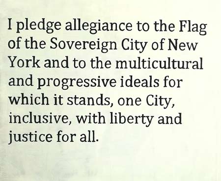 Um outro exemplo de respostas à eleição do presidente Trump, pôde ser vista durante o mês de Janeiro e a primeira semana de Fevereiro na galeria Petzel em Chelsea na exposição intitulada “We need to talk…”. Esta exposição apresentou um vasto leque de obras de 35 artistas e incluía também a projeção de vídeos do público que registaram ações, performances e outros eventos relacionados com o tópico, e que iam sendo adicionados durante o período da exposição. Entre muitos outros podiam-se ver trabalhos de Yael Bartana, Judith Bernstein, Cecily Brown, Rachel Harrison, Jenny Holzer, Jonathan Horowitz, Barbara Kruger, ou Slavs e Tatars. Gostaria de realçar o fato que os trabalhos que mais se destacavam, não eram nem do final do ano de 2016 ou de 2017, mas sim com mais de dez anos, como são exemplo os dos artistas Hans Haacke e Robert Longo.