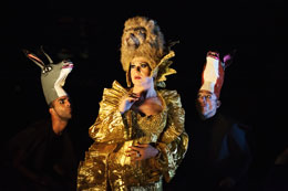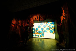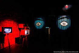 Num mundo cada vez mais formatado e massificado, Marie mostra-nos ser mais avant-garde que nunca – relembro agora o momento em que ouvi Sandro Aguilar dizer a Marie “Taking pleasure, and being able to do it with the minimum of conditions, and to do it directly, it’s being the most modern and the most updated filmmaker possible, in our days.” [4] Vinda da pintura e apaixonada pelo cinema mudo de Georges Méliès, os seus "tableaux vivants", como lhes gosta de chamar, foram uma forma de passar da pintura ao movimento, brincando com a magia das (não) narrativas espontâneas, como rasgos de cores e sonhos delirantes: desenham-se as cenas, prepara-se o ambiente, e depois convidam-se as personagens a entrar. Na pintura ou no cinema, do negativo ao positivo, em monótipos ou na película – o que sai é sempre uma surpresa – "está lá tudo, e é belo".[5] O trabalho desenvolvido ao longo dos últimos dois anos proporcionou a concepção desta exposição criada pela artista em parceria com o seu colega e amigo David Legrand, companheiro de projectos, parceiro de sonhos, aliado na teatralidade e performatividade do trabalho – arte – escolha – vida. David Legrand, um autêntico agitador foi um dos criadores do projecto "La Galerie du cartable", que também foi apresentado numa performance interactiva, e que continha um filme feito por ambos numa mochila que se torna um cinema portátil, abrindo-se como uma câmara antiga. A premissa para esta exposição foi pensar como expor o trabalho de Marie fora do contexto da sala de cinema; e há muitas oportunidades e possibilidades que se abrem em termos de materiais, de formas de expor, de aparatos ou artifícios que complementam e expandem os filmes da realizadora. Surgiram elementos e ideias que se aproximam muito dos cruzamentos que a própria galeria procura trabalhar e com a programação do Festival. Entramos num território que nos leva aos primórdios do cinema e ao burlesco, trazendo um certo humor e uma teatralidade excêntrica – e isso veio também a verificar-se nas escolhas da programação paralela. Começamos o percurso da exposição com uma série de desenhos, elaborados propositadamente para a galeria e para este contexto. O próprio suporte é muito delicado e esse é também um lado de Marie –- esse território da fragilidade – que ela trabalha e assume, acolhendo tudo e todos na sua alegre loucura – sendo ela mesma essa alegre loucura. Na primeira sala encontramos obras de David Legrand que ganham uma enorme dimensão plástica e escultórica com três figuras colocadas no meio da sala que se ligam, por tentáculos, às três projecções –- são seres de uma nova era, figuras que se transformam e que mantém tudo à sua volta vivo, ligado, a respirar. Desde o diálogo fictício entre Marguerite Duras e Roland Barthes aos elementos plásticos e constantemente mutáveis, este é um lado que interessa muito a David Legrand – a performatividade, a encenação de vozes, a metamorfose contínua. Seguimos, e entramos cada vez mais no mundo de Marie: um cenário de ópera, a galeria moldada para um modo de pré cinema, onde caixas de luz e modos de fazer cinema mais arcaicos nos transportam a lugares que a própria realizadora explora no seu trabalho, e que estiveram muito presentes na forma de trabalhar e construir a exposição. Desde panelas que relembram os círculos de Chaplin e que encerram a imagem naquela roda viva, às cortinas com uns olhos bem abertos, melancólicos e perguntadores, passamos por confettis que nos convidam a juntar-nos à festa e quase, quase a comer o bolo. Conseguimos ouvir todo um conjunto de elementos sonoros, de diferentes trabalhos, que se juntam e que se tornam numa selva – festa. Fazemos o percurso pelas salas da galeria, como se Marie nos guiasse, enquanto se ri, divertida, quase como se estivesse a deixar marshmallows pelo chão – e nos levasse para onde quer, para todo o lado. Marie percorre o poema, desperta as aves e os animais, dá música e festa a todas as coisas, abre-nos lugares onde todos os delírios são possíveis. Filmes loucos e filmes sérios. Filmes loucos e sérios. Numa tensão latejante entre a dor e a alegria, Marie transporta-nos, transmuta-nos, transforma-nos, transcende-nos. Transborda, transgride. Transita e transfere.