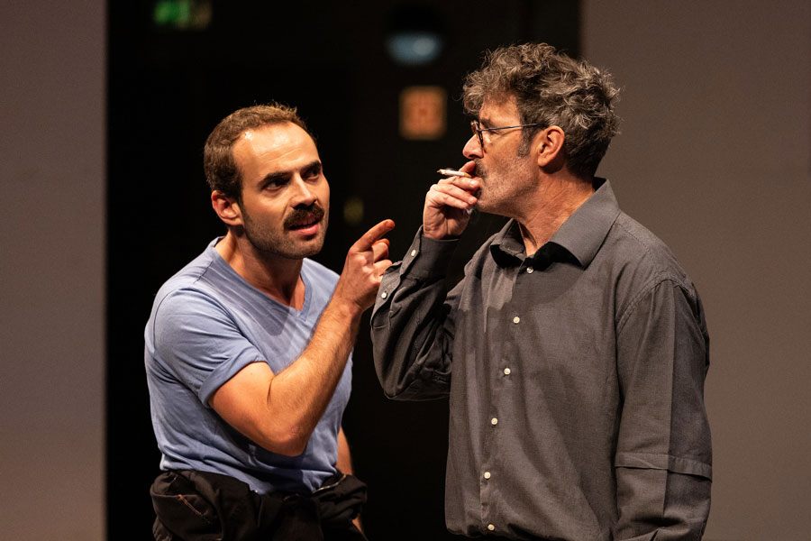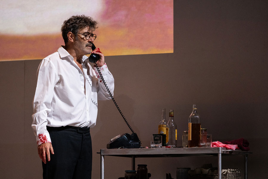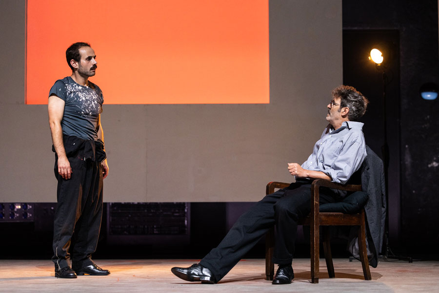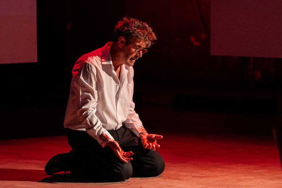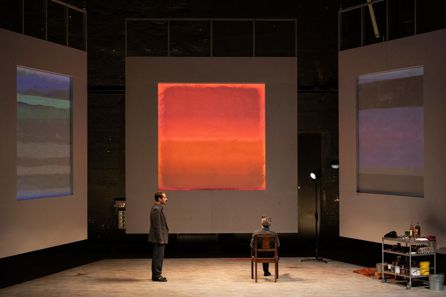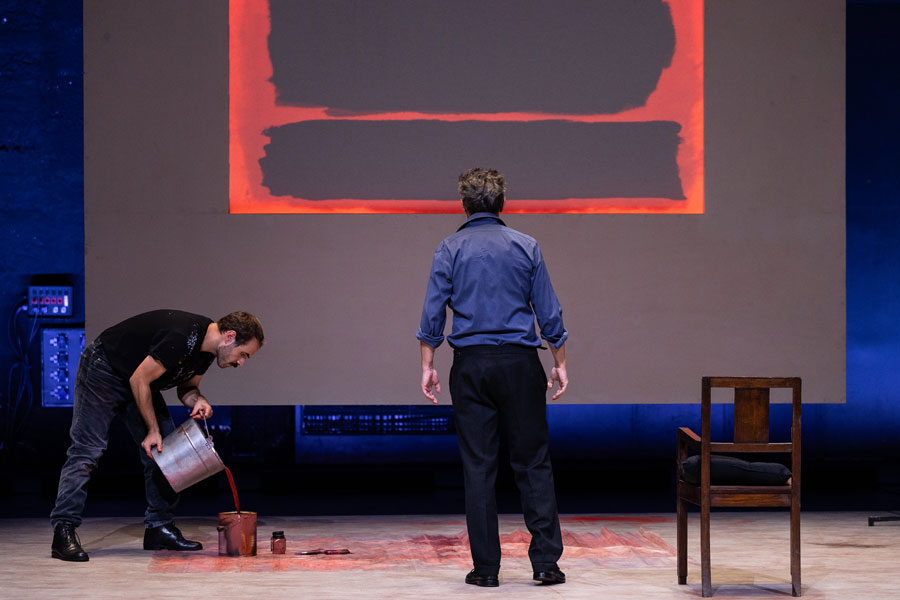 Cedo se percebe que Vermelho não será apenas vermelho. Aliás, ele parece nem querer existir pois é quase um insulto nomeá-lo assim. “Escarlate - carmesim - ameixa - amora - magenta - bordô - salmão - carmim - cornalina - coral” [2]. O tom inominável do matiz irá coincidir com o tom logo insuportável da voz de Rothko quando profere a primeira fala: um “O que é que vês?” surpreendentemente brusco e ríspido, depois de o vermos sentado de costas e em silêncio a contemplar uma das suas pinturas. A pergunta, contrariamente ao que se espera, não é retórica. Rothko exige uma resposta precisa ao futuro assistente que acaba de entrar no estúdio para a entrevista de emprego. Para um pintor que evocou que o silêncio era a derradeira resposta à fruição emocional da sua pintura, a avalanche argumentativa a que se assistirá nos próximos 90 minutos de peça é paradoxal, logo, intrigante. O texto de Logan reúne declarações do artista a partir de várias fontes, construindo uma versão de Rothko como um “homem furioso”, se quisermos citar John Fisher no artigo que escreveu para a Harper’s Magazine em 1970, ano da morte do artista. “Falar, como descobri mais tarde, era uma necessidade para ele, como respirar” [3]. A peça é a transcrição dessa necessidade vital: um jorro de fúria que se faz ouvir demasiado alto para a atmosfera “sagrada” e reverente do atelier. Esta sensação de discordância paira em todas as cenas: dada a conhecida dificuldade em descrever por palavras a sua pintura - escassa, senão nula, em elementos descritivos diretos -, a verborragia de um raciocínio irrepreensivelmente articulado e rápido que brota de ambas as personagens não parece condizer com a experiência muda da sua obra (seja ela emocionalmente arrebatadora ou vazia). Tal sensação imbui a peça de uma agilidade e densidade, por si só, notáveis. Esta exasperação que flutua está na própria génese das pinturas do Seagram, que constitui uma das histórias morais do modernismo norte-americano da década de 60. Rothko aceitou a encomenda de 35.000 dólares (uma quantia sem igual na época) “com intenções francamente malévolas” de arruinar o apetite das pessoas que, acima de tudo, desprezava (nunca suficientemente dignas de verem sequer (!) a sua pintura). O seu intuito era que se sentissem “presos numa sala onde todas as portas e janelas estivessem tapadas, de modo a que tudo o que pudessem fazer fosse bater com a cabeça contra a parede, para sempre” [4]. Este desejo de enclausuramento que roça a tortura (influenciado, segundo o próprio, pelo vestíbulo da Biblioteca Mediceia Laurenziana, de Miguel Ângelo, em Florença) teria o propósito de ser votado à introspeção, o que fazia do restaurante um lugar desadequado e desmerecido para a experiência meditativa e espiritual que Rothko queria induzir no observador. Rothko. A sua ambição intelectual, influenciado pelo niilismo de Nietzsche, via a arte em termos absolutos e queria “elevá-la ao nível da pungência da música e da poesia”, uma experiência de um ato apenas (como o é a peça de Logan), capaz de expressar emoções humanas básicas: tragédia, êxtase, desespero, morte. A este desígnio hercúleo e profundamente ancorado na realidade (e não em premissas religiosas, míticas ou místicas), não se esperava uma personalidade menos forte: Logan fá-lo altamente tenaz na recusa obstinada em abandonar os seus ideais e opiniões mordazes sobre o meio artístico da época, atacando a falta de cultura a par com a ignomínia frívola e especulativa do mercado da arte. Por isso, é tão reativo aos comentários do assistente sobre o simulacro que achava ser a arte dos seus contemporâneos, composta por “latas de sopa e banda desenhada”. Não é surpreendente esta posição dado que um quadro seu “é estranho a esta noção de progresso (...) não avança nem recua (...) está aí, fora destes movimentos. É pura imanência” [5]. A volatilidade de Rothko esconde assim uma vulnerabilidade - o medo de se tornar redundante e ultrapassado por questões que assumia como menores e datadas. Ken. Ken não é, de todo, diminuído na presença do pintor (tudo se suspende quando disputam fogosamente as várias associações da palavra vermelho). Ao contrário de Rothko que se mantém para sempre na sua luta interior dogmática, Ken cresce com as suas invasivas partindo de uma timidez ingénua para uma admirável auto-afirmação. Pouco lhe conhecemos além da memória da neve branca que cobria a manhã do dia do assassinato dos seus pais - um indício de um passado marcado pela tragédia. Descobre-se assim que a raiva também a ele pertence, servindo de guia para o percurso autónomo do jovem pintor. Ele não se subjuga às convicções de Rothko mas aprende com elas, acabando por tecer as suas próprias opiniões e se tornar num fervoroso porta-voz do futuro. Ken é a personificação de uma nova geração de artistas, aquela que suplanta a anterior - a da Pop Art contra o Expressionismo Abstrato -, apesar de nunca chegarmos a ver a pintura que traz embrulhada para mostrar a Rothko. O duelo em que se torna a sua relação - um confronto ambivalente entre pai e filho, mentor e aluno, mestre e discípulo - culmina num pacto silencioso e justíssimo de reconhecimento mútuo. Rothko e Ken. Ambos aterrorizados, um pelo preto, outro pelo branco. No fim, anulam-se porque são semelhantes. Resta o vermelho, esse “pedaço minúsculo de esperança que faz com que tudo o resto seja suportável” [6]. Está-se perante essa vitalidade numa versão contemporânea d’O Atelier Vermelho (1911) de Henri Matisse (que Rothko viu, vezes sem conta, no MoMA). Carlos Pimenta, ao recusar a mimesis do atelier do pintor, cria um espaço cénico depurado composto por um retábulo gigante de 3 ecrãs de meditação (cujo formato remonta às estruturas-cavalete que existiram efetivamente no estúdio) e onde se vão pr