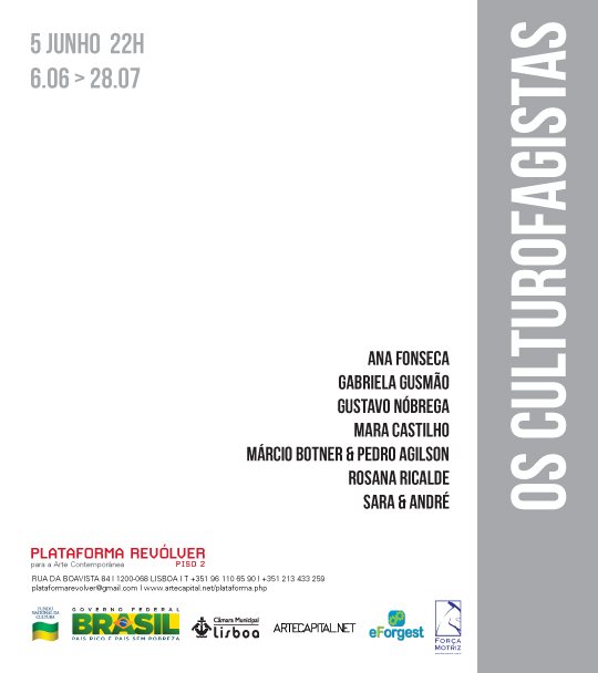 Os Culturofagistas é um projeto entre artistas Portugueses e Brasileiros que aqui toma a forma de uma exposição ancorada na celebração de uma língua comum através da sua poesia. O cais de partida são letras de Samba e Fado, expressões vivas do património imaterial intrínseco a cada um destes dois povos. Os artistas foram convidados a revisitar a sua própria língua e a proceder à criação de uma obra original a partir de um poema musicado.