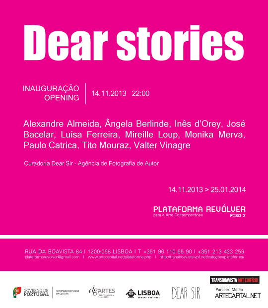 A exposição Dear Stories foi concebida na sequência de um convite do Museu da Imagem de Braga junto da Dear Sir - Agência de Fotografia de Autor. Esteve em exposição de Março a Maio de 2013 e é apresentada agora na Plataforma Revólver.