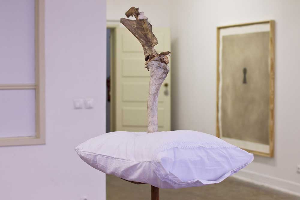 A matéria que favorece a substância desta minha exposição com Bárbara Fonte forma-se a partir de 3 razões, diferentes mas entrelaçadas entre si. A razão da sobrevivência interroga o corpo da memória e mistura-se com a razão da vivência que regista o corpo presente na esperança que ambas possam contribuir para o desenho de uma nova razão construtiva... Uma flanerie ao longo da história de algumas histórias da História, sempre em movimento, sempre idêntica, sempre diversa. Vestígios, sombras, aventuras, simulacros, repetições... Fios, linhas cruzadas, teias e manchas, ritos de passagem, paredes, fendas, aberturas, fechaduras, viagens. Memórias acumuladas em espaços transitivos. Sonhos sonhados, peregrinações temporais, encantos vividos e lúcidos enganos. Lágrimas, risos e sorrisos. Beleza purificada, sinais de fogo.