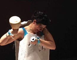 Nos últimos meses tem vindo a criar o que chama de ‘objectos escultura’, uma mescla do estudo do figurativo, concretizado para sugerir uma emoção. Estas formas em miniatura, estáticas e cheias de vida, num movimento histérico e num choro implosivo, representando uma certa teimosia pela dor e remorso, debatem-se, em muitos casos, com questões de género e estão incapacitadas, não por drogas ou álcool, mas pela pura dor do amor. As lutas interiores encontram-se na forma como estes corpos animados se esforçam por sugerir um utrapassar da sua situação, um ultrapassar que subentende a dor ou a resignação com uma separação e um olhar em frente. Cecília Costa vive em Lisboa, onde as suas obras em hibernação se têm afirmado desde há muito. É tanto trabalho como afirmação; um modus operandi muito pessoal que explora o mito de Penélope, mito que, tal como em outros artistas presentes na exposição, é contestado e recontextualizado para que o seu lugar no nosso imaginário permaneça, de forma a potencialmente resolver questões de género. Costa usa o seu mais sensual elemento corpóreo, o cabelo, a fim de descrever e criar uma peça de roupa interior que cubra a sua dignidade, a zona púbica. Ao tornar o natural no artificial, permite uma reutilização e reformulação da informação e do lugar.