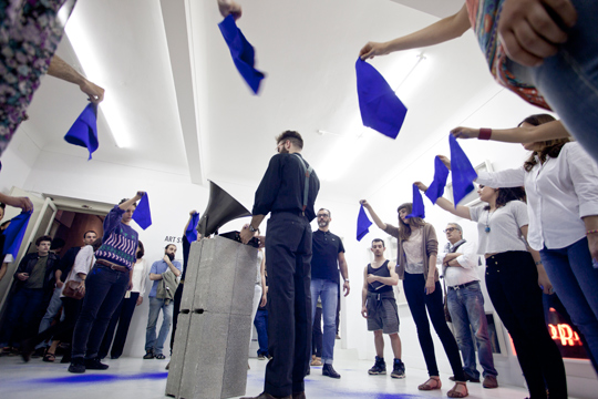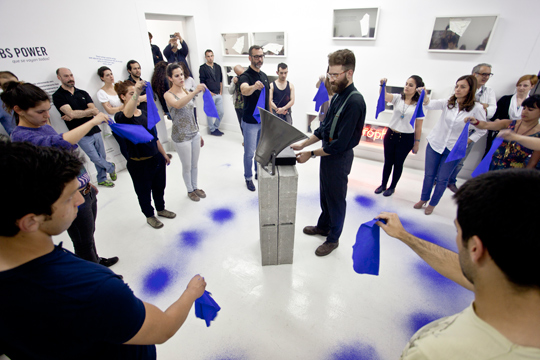 “ART STABS POWER - Que se vayan todos!” is an exhibition focusing on the several policies of austerity imposed to Portugal, its impacts in Society and in the Arts. Art has always remained a critical and conscious platform reflecting upon the local social and political issues that consequentially mirror global politics and international interests. Thus it explores the current interrelationships between art, activism and politics through several art projects. These projects use performance, installation, video, painting and objects as mediums of manifestation and/or reflection on the current austerity policies that have brutally impacted the lives of the Europeans and Portuguese people as well as the future of their country.
