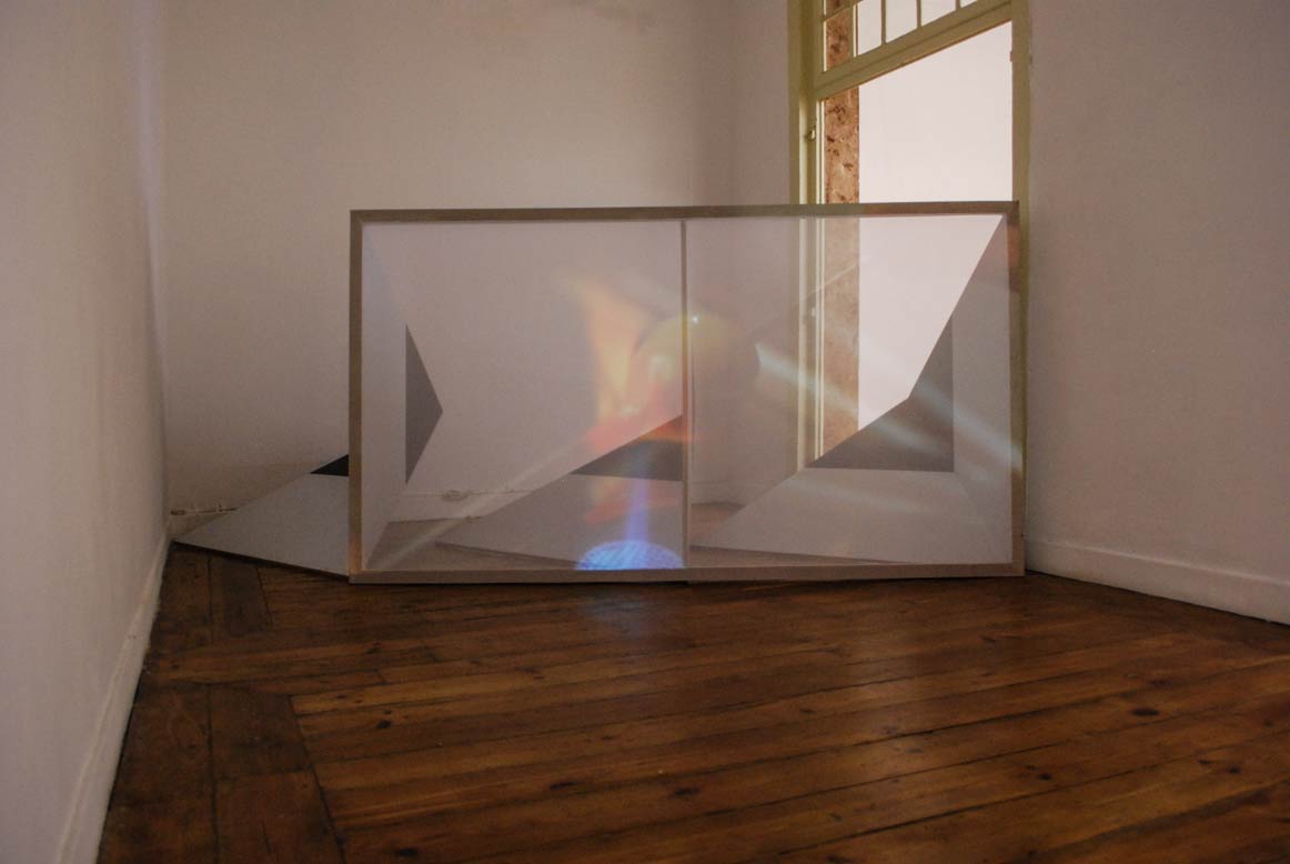 Unos días más tarde, Karlos Gil (Toledo, 1984), antes de viajar a Londres como artista en residencia, me hablaba de ese "peldaño inclinado" (Slant Step, en inglés), objeto artesanal sin aparente importancia ni aplicación alguna que, encontrado al azar en 1965 en una tienda de artículos de segunda mano, termina convirtiéndose en un objeto artístico. Sustraído incluso por Richard Serra para ser mostrado en Nueva York, y devuelto posteriormente, inicia así unperegrinar de costa a costa y entre los distintos centros artísticos de Norteamérica. El artista nos trae del pasado este objeto y nos lo presenta en su proyecto -––––––¬ ̆ (Slant Step).