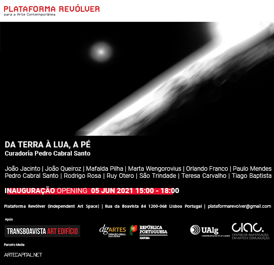 A Plataforma Revólver - Independent Art Space apresenta da "Terra à Lua, a Pé", uma exposição coletiva que explora um complexo dispositivo, capaz de mesclar inúmeros meios e técnicas que, no seu conjunto, procurem envolver o espetador num ambiente de cariz exploratório, com abordagem do papel dos artistas, e da arte, em torno de problemas, e acontecimentos genéricos, vigorados e ancorados nas nossas sociedades ditas contemporâneas. Fenómenos político-sociais relevantes e imprevisíveis relacionados com a incessante disseminação de múltiplas e diferentes linguagens que constituem a essência do nosso mundo contemporâneo, e que se manifestam formalmente por entre a essência pictórica, escultórica e instalatória. Propõe-se, deste modo, aos artistas, a possibilidade de se ter uma visão para lá das formas e do aparente reconhecimento dos “objetos” usados, e assim obter outras leituras que sem as quais tornavam este (e outros) Mundo, sem dúvida, mais pobre.