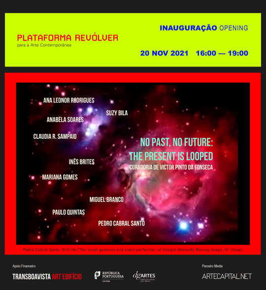 “no past no future - the present is looped” relaciona artistas pouco visíveis (ou difíceis de encontrar sem alguma pesquisa), como a Suzy Bila, a Ana Leonor, e ceramistas contemporâneas como a Anabela Soares e a Claudia R. Sampaio, com artistas com bastante visibilidade e bem referenciados como o Miguel Branco, o Pedro Cabral Santo, o Paulo Quintas, e as muito jovens Mariana Gomes e Inês Brites; a exposição permite criar dinâmicas distintas; mas que todos esses diferentes estilos e sensibilidades seja o prazer de encontrar/ descobrir uma exposição acima de tudo baseada no conceito intencional que a arte em todos os lugares se faz mais de diversidade do que de homogeneidade. Com efeito, são menos as conclusões idênticas que fazem as inteligências parentes do que as contradições que lhes são comuns. O mesmo acontece com a arte e com a criação.
