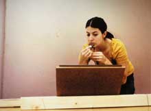 Ana Bezelga apresenta a projecção de diapositivos “RE:†(2006) onde, através de uma agregação dos conceitos de género, feminismo e identidade, ritualiza uma passagem do conhecimento entre duas mulheres de gerações e lugares diferentes. Os valores chave da arte femininista do passado, problematizados através da presença de Ana Mendieta , encontram-se aqui em diálogo com a prática artÃstica da própria Ana Bezelga. No vÃdeo “Baltic Draft 2†(2006), a dupla Antje Feger & Benjamin Florian Stumpf reflecte sobre uma viagem que fizeram com Dani Leventhal, uma amiga norte-americana à procura das suas raÃzes pela Europa de Leste. Segundo os autores este trabalho questiona a diluição de fronteiras culturais entre os diversos lugares visitados. Carlos Alberto Carrilho expõe o vÃdeo “Sem Titulo†(2006), uma narrativa que se desdobra gradualmente sobre um intenso efeito de clÃmax. O vÃdeo é apresentado num monitor colocado sobre uma mesa, que tem aqui um duplo papel, como lugar da obra e também como a única testemunha dos eventos a que se assiste. Carrilho estabelece simultaneamente uma relação enigmática e provocadora entre a construção de valores históricos e a legitimação da sua historia.