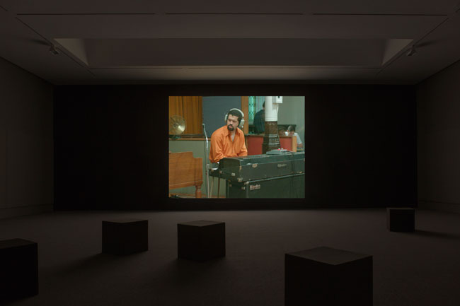 Luanda-Kinshasa consiste numa vídeo-projeção que apresenta uma banda de jazz de fusão, free e afrobeat a gravar nos famosos estúdios da Columbia Records, conhecidos por The Church. A situação ocorre no início da década de 1970, quando Miles Davis, cuja sombra paira sobre esta música, deu início a uma fusão de novas linguagens, como a eletrónica, o rock ou o funk, com o jazz. Assim a música que estes músicos-atores realizam parece dar continuidade a esse projeto e acrescentar novas fusões e as referências ao afrobeat de Manu Dibango são claras, mas de facto não ocorreram com Miles Davis embora tivesse sido possível e sustentável por um projeto de crescente universalismo que animou a sua demanda musical, bem como a do seu par africano. A banda toca duas músicas e de cada vez que estas são repetidas pelo vídeo a ordem dos segmentos fílmicos e musicais é combinada aleatoriamente, pelo que é o próprio dispositivo computorizado que apresenta o filme a participar diretamente na composição da música de forma aleatória e livre como se quis o jazz deste período, também ele parte da utopia de um diálogo universalista.