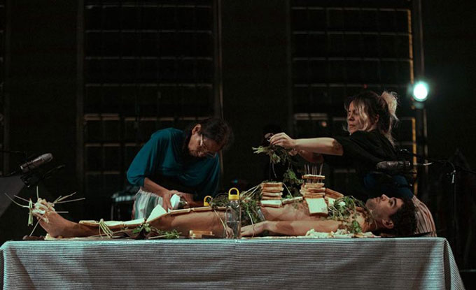 O último dos espetáculos apresentados na primeira semana, leva-nos a 3 de junho numa viagem delirante da Plataforma285, envolta pela mercantilização e o capitalismo dos afetos, no sentido especulativo entre o que somos, sentimos e projetamos. “all you can eat” é um espectáculo transdisciplinar que cruza teatro, performance, instalação, dança e concerto ao vivo, que busca reclamar o direito ao ócio, enquanto se descobre cada vez mais preso, cada vez mais produtivo, cada vez mais rentabilizado. Se, por um lado, exigimos o direito ao descanso e ao aborrecimento, por outro são cada vez mais os estímulos que desvirtuam esse não-fazer-nada, criando a sensação de que esse tempo deve ser ocupado sob pena de não o estarmos a aproveitar. E assim se levante uma reflexão: entre viagens, ioga, meditação, exercício físico, workshops, atividades de degustação, como é que esse tempo já foi mercantilizado por um capitalismo dos afetos e do tempo?