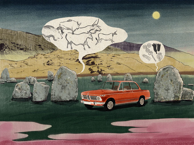 Craig Coulthard (SCO), Castlerigg Stones Explain the Context for the BMW 2002 (As Pedras de Castlerigg explicam o contexto ao BMW 2002), 2023. Desenho digital, 60 x 45 cm. Imagem cortesia do artista/ DUSK23.