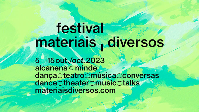 De 5 a 15 de outubro de 2023, o Festival Materiais Diversos habita Alcanena e Minde com um programa que pretende continuar a aproximar as pessoas e as artes contemporâneas. Espetáculos de dança, teatro e música, instalações e conversas revelam o trabalho de artistas e valorizam as relações que a Materiais Diversos constrói ao longo do tempo. Desacelerar e tornar visíveis as pessoas, os lugares e os processos são os motes da 12ª edição do festival, com direcção artística de Elisabete Paiva.