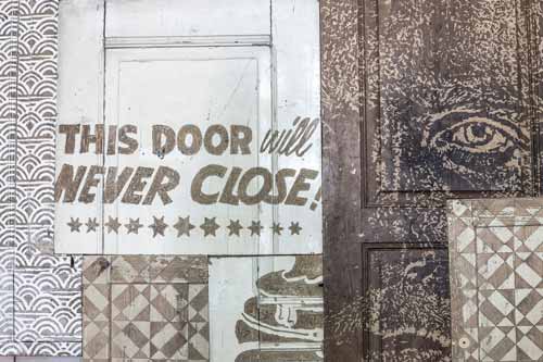 A exposição funciona como uma cidade em pequena escala, dissecada e pronta a ser inspeccionada pelo público. No exterior, o depósito em frente ao edifício principal, mostra a obra “Panorama”, uma sequência de rostos à mistura com figuras geométricas. A peça, composta por três camadas de posters e que durou um mês a ser realizada, é a entrada no tema da cidade, na medida em que reproduz vários rostos de pessoas de várias cidades por onde o artista passou. Rostos que se unem e sobre os quais se realiza uma espécie de zoom onde se ampliam os seus olhos. Pessoas, padrões e logótipos, provenientes de vários trabalhos espalhados por diversos sítios, juntam-se numa só obra. Aqui, ao contrário dos “panoramas” originais, não é preciso entrar para ver, a câmara circular onde as imagens estão inverte-se e torna-se pública, à vista de todos.