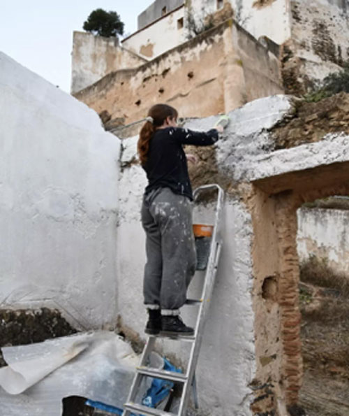 A casa caiada é uma casa pintada com tinta de cal. Antes de haverem tintas acrílicas e tudo mais, era com isto que se pintava nas aldeias. Na maioria, era um trabalho feito por mulheres, que se ajudavam umas às outras. Às vezes era um dia inteiro em que a aldeia fazia o mesmo. A mim interessa-me muito esta luz e obviamente a simbologia da cal.