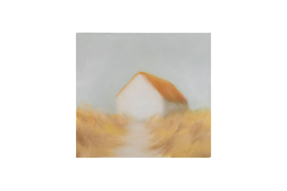 Estas pinturas das casas também são um pouco isso, esse estado mental ou emocional de um sonho ou de um local muito tranquilo, mas que na verdade não existem, estas casas não existem, não são reais e são muito esbatidas exatamente porque têm sempre uma camada do que é irreal. Têm fumo à frente, não são atingíveis, mas quando eu estou a pintar, estou sempre à procura dessa casa no campo onde ninguém incomoda porque está completamente isolada, mas também, não é necessariamente positiva porque é uma ilusão.