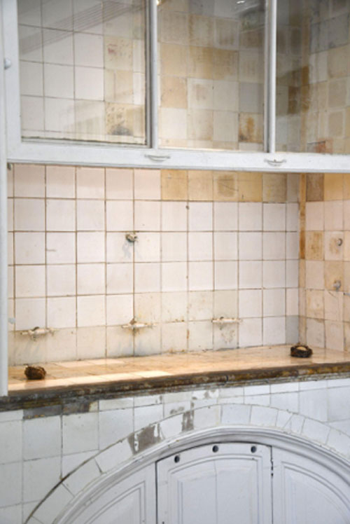 CG: Sim, a outra obra chama-se Peculiares violências. São uns retângulos de barro que depois são organizados da maneira que é organizada a tijoleira portuguesa, ela estava no chão organizada dessa maneira.