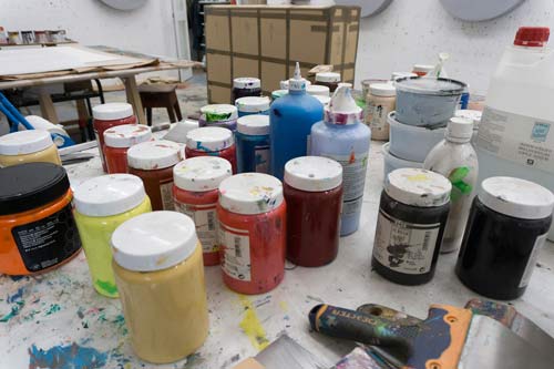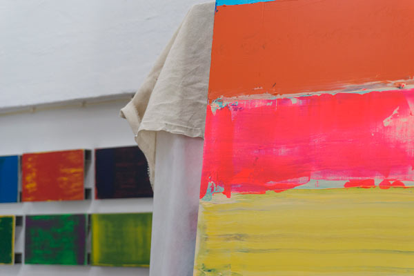 PC: Exatamente. Isto dá muito trabalho e neste momento sou eu sozinho que faço isto. Muitas vezes só me apetece pintar mas tenho que tratar destes assuntos. Tenho tido muitas exposições, de facto, e há muita coisa burocrática para preparar. Aquela imagem romântica de que estamos só a pintar... não corresponde à realidade. Tenho uns dias em que estipulo mais ou menos uma parte do tempo para trabalhar e outra parte para resolver problemas, comprar materiais, esse tipo de coisas. Esse trabalho é um trabalho diário. Todos os dias estou aqui às 10h da manhã e saio daqui às 19h30/20h. É esse o meu dia a dia.