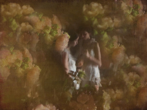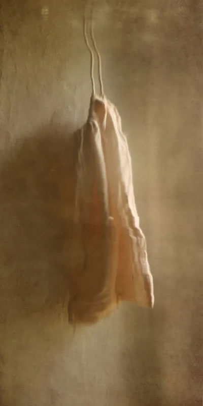As pinturas fecham o olhar sobre o que elas mostram, as fotografias abrem-no, em direção ao desconhecido, em direção ao sonho. Reparem neste simples saco de pano suspenso: pode ver ali um vestido, um fantasma, um animal marinho, um pedaço de carne, quem sabe? Os ramos pendentes parecem desenhar com a sua sombra caligrafias abstratas; jovens raparigas fundem-se nas flores e na vegetação como Dafne transformando-se num loureiro (enquanto nas duas pinturas do século XVIII das quatro estações, as duas mulheres com as suas expressões inocentes, são bem presentes e preferem desviar as atenções dos frutos da primavera ou do outono, artisticamente pintados ao seu lado).