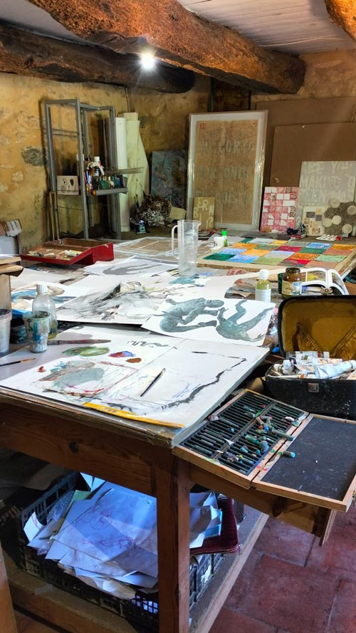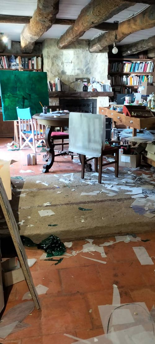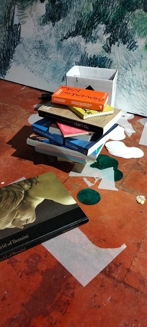 Por estas razões, quando comecei este projeto, sabia que não fazia sentido deitar fora todos os materiais que tinha no atelier e adquirir e utilizar exclusivamente materiais ecológicos. A minha prática e maneira de estar não tem nada de purista. No entanto, na compra de novos materiais, fui muito consciente na sua escolha: pastéis ecológicos feitos à mão, um painel solar, papel em grande escala (que trato cuidadosamente, sem qualquer desperdício), barro.