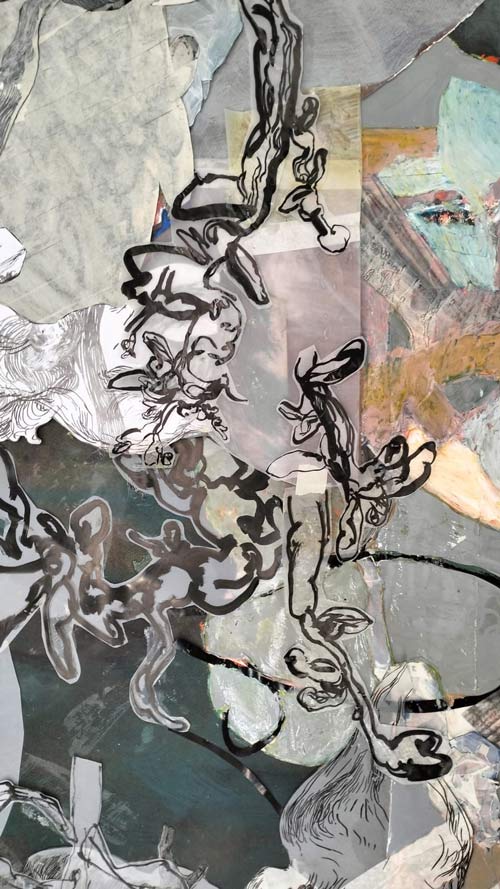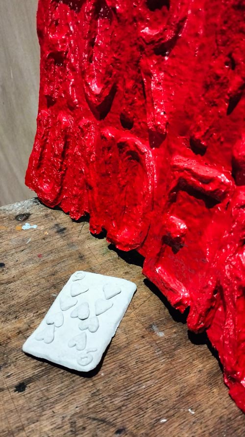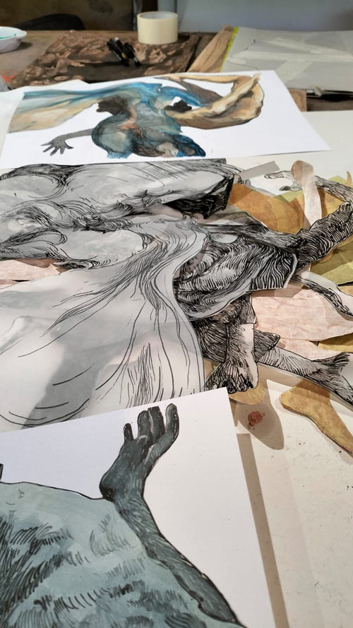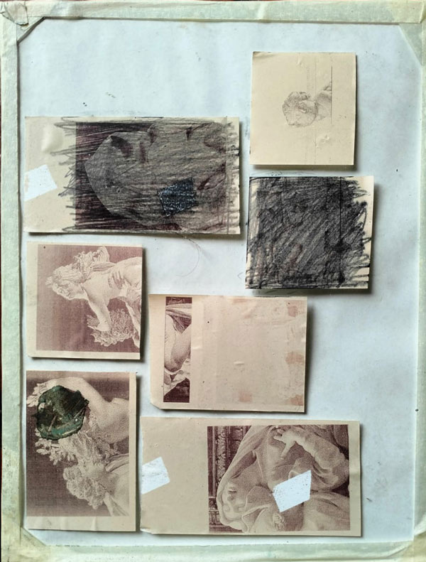 O barro é algo novo para mim. Uma vez, um professor de cerâmica viu uma avaliação de desenho dos meus trabalhos e disse: “Oh, desenhas tão bem! Porque é que és tão má em cerâmica?”. Adoro esta história e conto-a muitas vezes. Foi exatamente por ser má em cerâmica que decidi trazer “para a mesa” essa oportunidade de fracasso. Foi também assim que comecei a usar pastéis e colagens - porque era muito má a utilizá-los. Escolho muitas vezes os meus meios pelo desconforto que me trazem, o que fortalece a minha capacidade de me desligar de objectivos e me obriga à total disponibilidade para o que será único do processo. Mais uma vez, é uma estratégia para ficar antenada.
