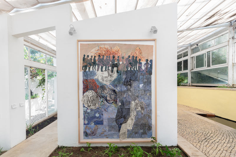 BM: Só depois de quase dois anos de processo é que me permiti reintroduzir a minha linguagem visual anterior - o desenho figurativo. A permacultura ajudou-me a perceber que, no meu desejo de envolver perspectivas não-humanas, tinha acabado por segregar o que será próprio e único da natureza humana. Bedtime Arguments marca essa compreensão que foi crucial para o desenvolvimento deste projeto. A obra retrata duas personagens - uma humana e uma não-humana - a terem uma discussão ao deitar, “ao estilo” de uma telenovela. Este trabalho ganhou vida durante uma residência em Nova Iorque, onde o meu estúdio foi instalado num quarto vazio de uma casa senhorial em Governors Island que havia pertencido a um militar (possivelmente um pai ausente) e à sua família. É por essa razão que a obra se apresenta em inglês. De certa forma, tive de humanizar estas questões para que as pudesse considerar de uma forma mais honesta.