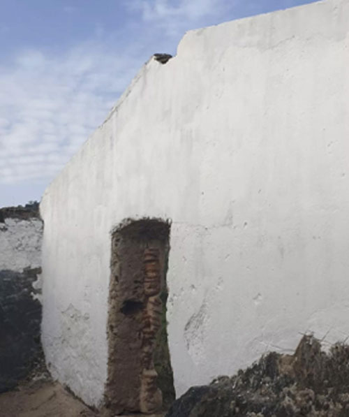À distância dava para ver a luz de uma casa, mas pela parte de dentro e deste cuidado, porque as casas caiadas, têm que ser caiadas de ano a ano porque não é uma tinta que segura tão bem.
