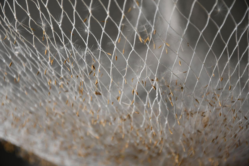 CG: Todos estes materiais, eu tenho uma grande afinidade sem saber muito bem a origem dessa afinidade ou desse amor. Sinto que muitos deles por tempo passado com eles. Na natureza no geral, uma coisa que me interessa imenso é realmente estas coisas todas tão frágeis que têm os seus ciclos, mas que continuam cá. As pétalas, os espinhos têm uma herança, memória também. Não são só os seres humanos que criam memória.