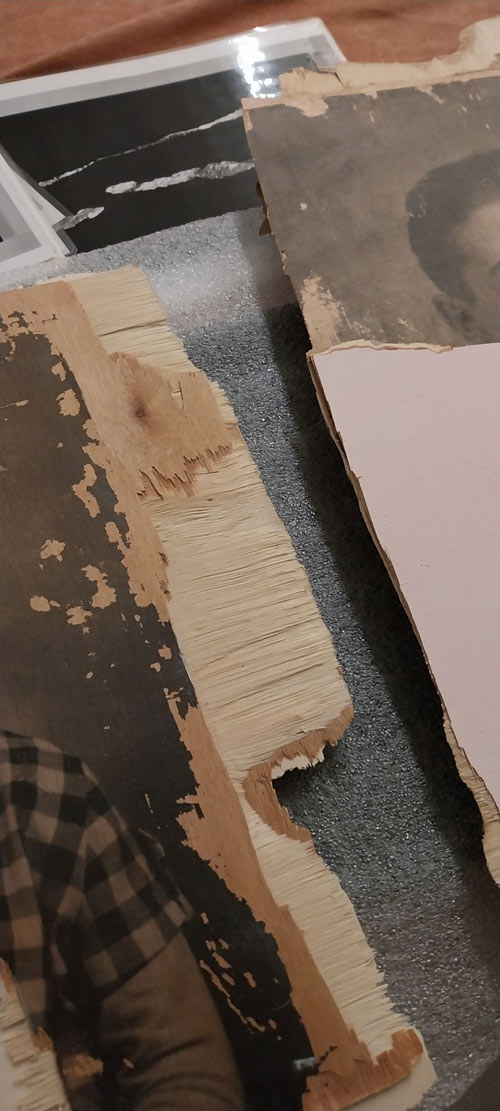 Ce qui est intéressant dans cette série, ce ne sont pas seulement les portraits, mais ce qu’ils évoquent : la photographie déchirée, et donc l’idée d’un contrat moral et financier entre deux personnes.