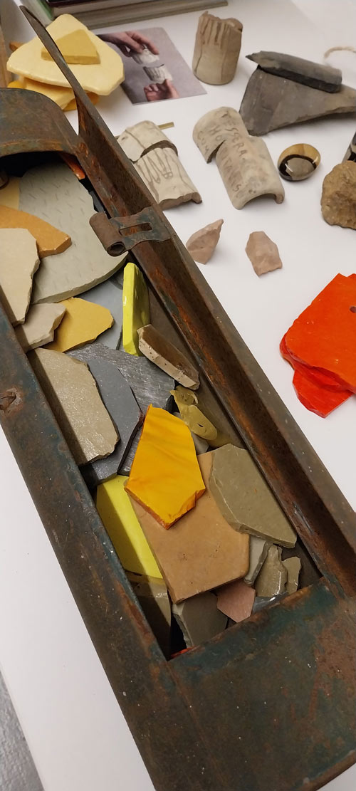 IF : Je travaille beaucoup sur la question des contrats, justement sur les «tessères d’hospitalité?». C’est-à-dire tous ces objets qui ont été cassés en deux pour symboliser un contrat, entre deux villes, ou entre des particuliers pendant l’antiquité. Une moitié restait dans une ville et l’autre moitié dans une autre. Quand on abandonnait un enfant, on pouvait lui laisser un petit objet pour le reconnaître plus tard: on gardait la moitié de l’objet cassé, une céramique par exemple, et on pouvait revenir à l’orphelinat et dire: «Cet enfant est le mien».