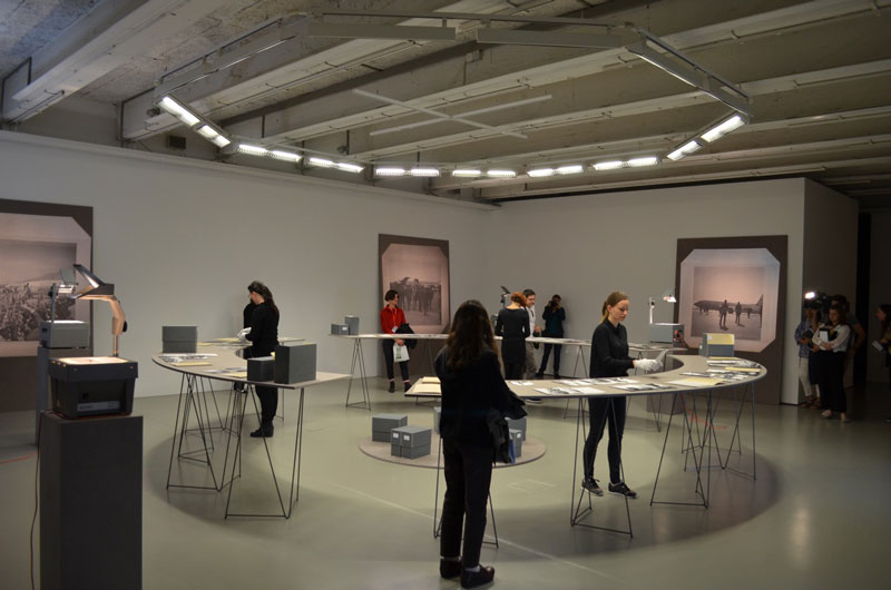 O ex-libris da Documenta 14 é o "Partenon dos livros" de Marta Minujín. A maior obra pública na já longa história da Documenta, montada em plena Friedrichplatz (praça central de Kassel que foi palco de uma queima de 350 000 livros durante a época nazi). Uma réplica em tamanho natural do Partenon. Trata-se, segundo a artista de "uma homenagem à democracia como invenção grega e à liberdade de expressão". Todos os livros aqui expostos foram proibidos por motivos políticos ao longo da história. Em 1983, a artista já tinha erguido um „Partenon de los libros" em Buenos Aires (em escala 1:4) com os volumes proibidos durante a ditadura argentina. Colocada mesmo em frente do Museu Fridericianum, a instalação funciona bem em termos arquitetónicos e simbólicos apesar da artista não ter conseguido angariar os 100 000 livros inicialmente previstos. Parte da estrutura metálica está por isso desprovida de livros, deixando uma imagem de "work in progress" e de "obra de fachada" para os críticos. As opiniões dividem-se de facto: para uns, a instalação constitui um dos pontos altos da mostra (uma homenagem ao livro e à informação impressa em plena era digital) e para outros, trata-se de um... flop (uma obra inacabada apesar do chorudo orçamento e dos 5 anos de preparação). Diga-se em abono deste último argumento que a organização do preview deixou, também ela, bastante a desejar com a ausência de inúmeras fichas técnicas para identificar os artistas e a falta de preparação dos vigilantes a dificultar grandemente o trabalho dos jornalistas e profissionais. Ainda na Friedrichplatz: a contínua exalação de fumo branco do alto da torre do Fridericianum interroga os transeuntes e vem relembrar as queimas de livros e os campos de concentração nazis bem como a própria destruição do edifício pelas chamas em 1941. Título da obra: "Expiration Movement Manifest" de Daniel Knorr. No Fridericianum, os grandes temas aqui são "emigração", "fronteira" e "democracia". Vlassis Caniaris (n.1928, Atenas; f. 2011) apresenta "Hopscotch" de 1974, uma instalação de seis figuras humanas e nove malas sobre um tapete em que as várias etapas do percurso dos emigrantes estão registadas a giz. Palavras como "Serviço de estrangeiros", "consulado" e... "desorientação". Outra obra que não perdeu nada da sua mordacidade: "Acropolis Redux (The Diretor´s cut) " 2004, do artista sul africano Kendell Geers (n. 1968), uma instalação de rolos arame farpado dispostos sobre estantes de metal. Com uma grande simplicidade de meios, o vídeo "27th February“, 3 min) de Thanassis Totsikas (nasc. 1951 em Larissa, Grécia) mostra um idoso a ser transportado nas costas de um jovem numa fronteira montanhosa. Uma interrogação sobre o fechamento das fronteiras e a solidariedade intergeracional. Com The Landscapes of Greece" (2014), uma lúdica vídeoperformance de 7,10 min., filmada no seu atelier, Yorgos Sapountzis (n. 1976, Atenas) traz uma agradável lufada de ar fresco para o Fridericianum. Stefanos Tsivopoulos (n. 1973), artista grego, radicado em Nova Iorque, apresenta um arquivo performativo. Uma coleção de 900 imagens, recolhidas ao longo de 10 anos, retrata os momentos políticos mais relevantes da Grécia do pós-guerra, da época da ditadura grega e da guerrilha marxista "17 de novembro". Se o arquivo e as projeções fotográficas já são visualmente apelativos, a instalação transforma-se e ganha uma dimensão original com a intervenção de performers que trocam as imagens, entoam ares de ópera e dialogam com os visitantes numa multiplicação de combinações e situações. Recentemente erguido na movimentada Koenigplatz, o "Monumento aos estrangeiros e refugiados" - um obelisco de 16,20 m. de altura com a famosa citação bíblica "Era estrangeiro, e acolhestes-me" do Evangelho segundo São Mateus - é desde já o local preferido para as selfies dos jovens imigrantes de origem turca e árabe que gostam de ler a mensagem traduzida nas suas línguas. Lembrando a universalidade dos valores humanistas e da hospitalidade, Olu Oguibe (n. em 1964), artista norte-americano de origem nigeriana que sobreviveu à guerra do Biafra (um conflito que levou à morte de cerca de 2 milhões de pessoas de 1967 a 1970) faz aqui um grandioso apelo à cultura de abertura e de acolhimento. Omnipresente em Kassel: a dupla franco-alemã PRINZ GHOLAM (Wolfgang Prinz n. 1969, Leutkirch, Alemanha / Michel Gholam, n. 1963, Beirute) combina imagens de arquivo, video-performances e desenho, recriando e recontextualizando as poses escultóricas ora expressivas, ora marciais da tradição clássica e neo-clássica. Outra dupla binacional: Marie Cool (n. 1961, Valenciennes, França) e Fabio Balducci (n.1964, Ostra, Itália). Banais secretárias empilhadas e colocadas na vertical criam uma instalação espacial onde Marie Cool executa performances silenciosas. A autonomia e a delicadeza dos seus gestos reforçam a tensão espacial e outorgam poesia e beleza ao impessoal mobiliário industrial, associado às normas e à monotonia do mundo dos negócios. A grande sala da Documenta-Halle é dominada pelas duas esculturas: um "quipoem", instalação imersiva constituída por gigantescos fios de lã que sincretizam referências mitológicas gregas e andinas da autoria de Cecília Vicuña, poetisa e artista visual chilena exilada em Nova Iorque desde os anos 80 e "Fluchtzieleuropahavarieschallkörper" (em tradução caseira: Corpoderessonânciaavariaeuropadestinopararefugiados) de Guillermo Galindo (n. 1960, na cidade do México): um conjunto de destroços de barcos de refugiados, de remos e de boias de salvação transformados em instrumentos musicais com peles de cabras, cordas de piano e de címbalo, ferro-velho e metal. Galindo não visa uma execução musical no sentido estreito da palavra mas sim a expressão sonora da materialidade e da carga simbólica dos objetos encontrados. Hiwa K (n. 1975, Curdi