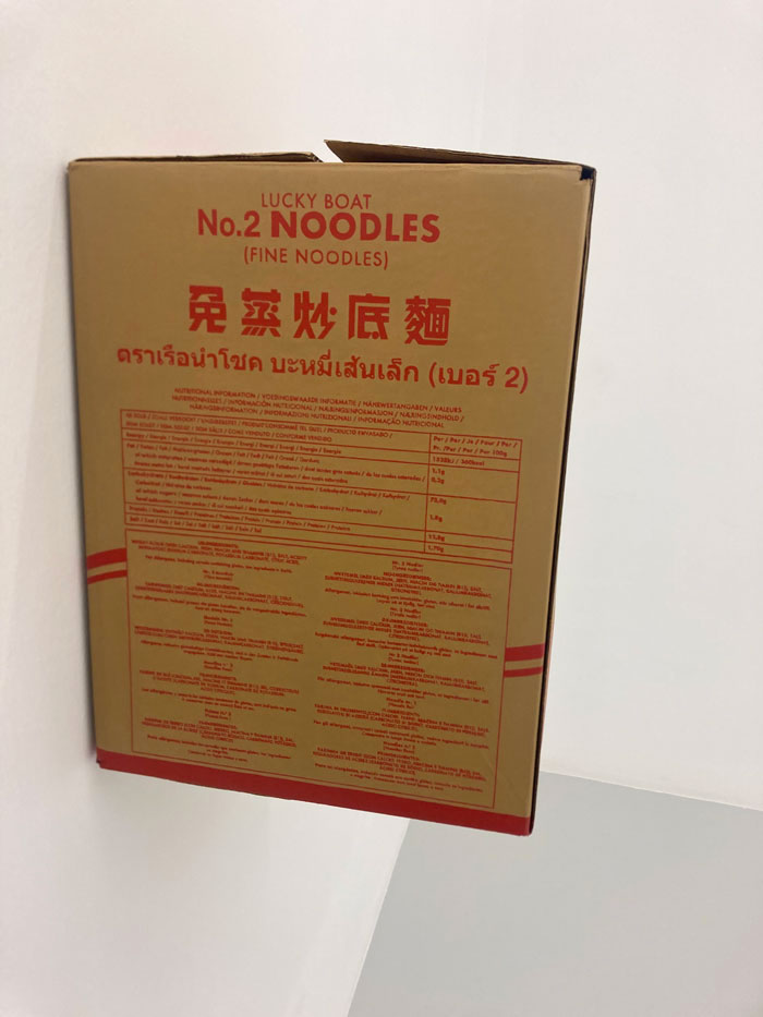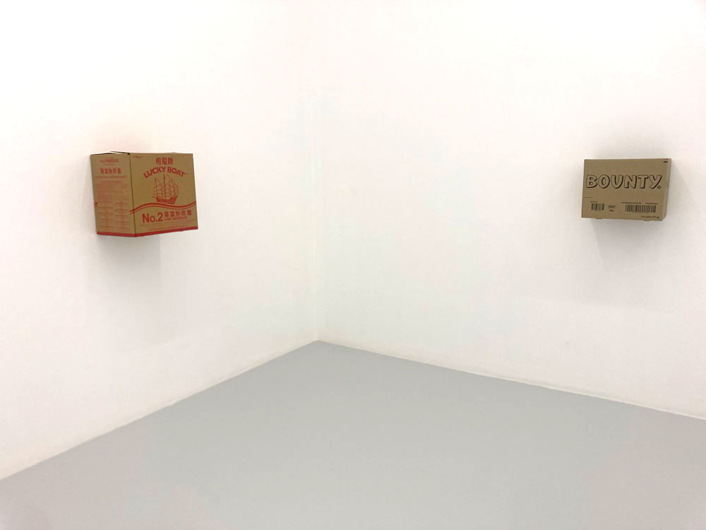 Na sala inicial deparamo-nos com as primeiras obras de Laurent Dupont e Daan van Golden. Laurent Dupont colecciona caixas de cartão das viagens. Ao mostrá-las, a caixa original fica escondida sob uma pintura acrílica que reproduz fielmente a cor e o design da caixa (excepto o fundo, que podemos ir espreitar para comparação). Não é uma réplica da caixa que se mostra, é a caixa mesmo, que serve de modelo e suporte à pintura.