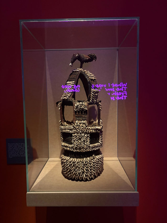 Entre as peças ativadas, há uma coroa da etnia Iorubá, proveniente de uma coleção privada francesa que foi para o museu; e um sino denominado bi-leebo, da ilha de Biko, no Golfo da Guiné, usado em rituais para combater o mal e a dor.