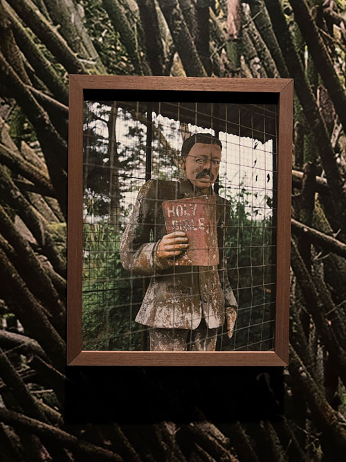 Num espaço com o tamanho perfeito, as obras estão perto umas das outras e, simultaneamente, com o distanciamento necessário para que seja possível entender o que liga e separa as obras de arte. Numa das performances em registo fotográfico, a artista pensa no colonialismo mental, através da reflexão sobre a importância do Orí na cultura Yorubá. Veste-se de exploradora, coloca um casque colonial e caminha pela cidade de Limbe, mais especificamente em Down Beach.