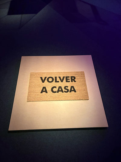 Agnes Essonti Luque cria um tapete de entrada de casa, uma peça de arte com a frase VOLVER A CASA. Um exercício contínuo e quotidiano de constatar a crise de habitação na Europa. O ato de regressar para compreender o passado e restituir o presente, continuar, através da arte. Escutar o seu corpo, a terra.