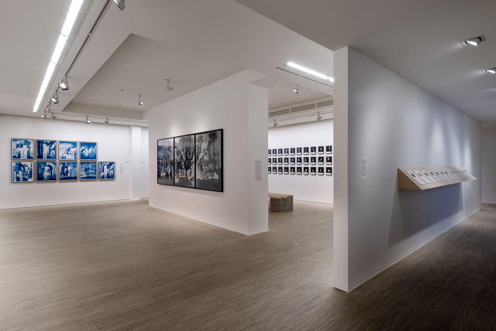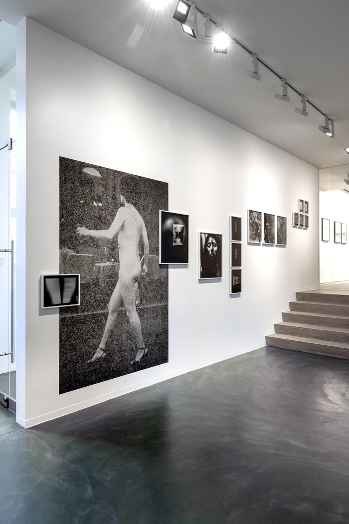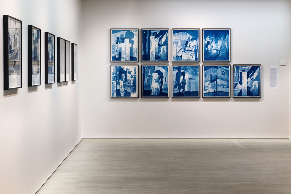 “An invisible labyrinth of time.” This is how the character Stephen Albert defines the object that serves as the leitmotif of the short story El jardín de senderos que se bifurcan. Jorge Luis Borges’ essay centers on a fictitious book-labyrinth where time diverges into infinite futures; within them, the same characters sometimes exist, and sometimes are “an error, a ghost.”[1] In this supposedly impossible work, however, the term ‘time’ is never once mentioned. It is this enigmatic text that lends its title to the artwork anchoring Tarrah Krajnak’s solo exhibition, RePose ExPose CounterPose. Occupying the spacious halls of Fondation A, the artist presents a group of series that oscillate between self-representation and the deconstruction of historical archives. Her work configures a heterogeneous photographic practice that subverts the canon. Marked by a deep political bias and a monochromatic aesthetic, Krajnak’s artistic production investigates the scars of a turbulent period in Peruvian history, the genocide of Indigenous peoples in the Americas, and the representations of the female body. The result is a plural archive that functions as a complex critique of historical and epistemological violences. By superimposing her presence onto the urban landscape and invoking art historical references, Krajnak intertwines different temporalities, translating subjective experience into an engaged collective reflection. In El jardín de senderos que se bifurcan, the artist connects her biography to the recent history of her country of birth, Peru, through a poetic search for her own roots. Based in the United States since childhood, Krajnak’s work reclaims a link to the troubled Peruvian society of 1979, the year of her birth. This date falls within the context of a decades-long dictatorship (1968–1980), followed by a period marked by profound human rights violations and acts of extreme violence carried out by both the State and armed groups—the precursor to a new and atrocious authoritarian regime. In the late 1970s, the Peruvian capital was a landscape of peasant marches against the State that were brutally suppressed by military force, triggering political radicalization and the prelude to an internal armed conflict. Originally structured as an editorial object, the project transposes a visual grammar into the exhibition space that brings together vernacular photographs, self-portraits, fragments of contemporary magazines, and texts authored by the artist. Thus, the proposal of Krajnak aligns her own identity with the country’s collective memory. For researcher Ángeles Donoso Macaya, the photograph is a finite object that functions as a supplement, whose field is permanently expanding [2]. El jardín de senderos que se bifurcan is precisely this expansion: a visual project whose genetics contain a literary trait inscribed in the fantastic tradition of Borges or even Julio Cortázar, who, in his daring Rayuela, seems to have realized Borges’ vision: an infinite work capable of being read in countless ways—a literature that is, above all, a multivalent trajectory. At once a fictional commentary on Latin American politics and a reflection on the author’s own exile, this fugitive book expresses the “conflict between the exterior and interior of all realities, including politics” [3] — as Tarrah Krajnak so masterfully demonstrates, both here and in the other works on display. Within the main room, where most of the exhibition is installed, Body Configurations (Lima) occupies one entire wall. RePose ExPose CounterPose features the second iteration of this project, which originated in Venice. The photographic series examines the urban topography of Lima, considering the city as a political archive. Choosing emblematic sites such as the Villa María del Triunfo slum and the mirador Morro Solar, the artist references the nearly eponymous avant-garde work of VALIE EXPORT, using her own body as a device for mediation and critique. Krajnak transforms public space into a laboratory for direct intervention. While reenacting the Austrian artist’s iconic poses, she articulates an original corporeal lexicon: by contorting herself against the mineral coldness of angular buildings and streets, and through organic modulation within the city’s fabric, Krajnak instigates a profound reflection on the visibility and autonomy of Indigenous women within an urban architecture shaped by colonial legacies. Regarding the 1972 work that inspired Krajnak, titled Körper-konfigurationen in der Architektur (Body Configurations in Architecture), EXPORT emphasizes the analogy between scenic and corporal arrangements — their “common forms” — and the “visible externalization of internal states.” [4] Updating EXPORT’s feminist proposal, Krajnak re-contextualizes the tensions of self-representation while occupying the dual role of photographer and subject—oscillating between alienation and presence, machine and body. The body as a cultural artifact—a term used by Roswitha Mueller [5] — is a site of historical-political inscriptions and functions as a potent performative archive. On the perpendicular wall, the bluish hues of 1979: Contact Negatives catch the viewer’s eye. In a performance realized in 2019, Krajnak projected iconography from the 1979 Peruvian press onto wooden structures and suspended panels. Moving between the projectors, the artist interposed herself within these images of Lima, creating a layered interplay where the body acts as a bridge between the real and the imaginary, staging a dreamlike return to her birthplace amidst the turbulent context of the 1970s. During the performance, the artist captured a sequence of images using a remote shutter release, subsequently developing them as cyanotypes. The poet and visual artist Ronald Kay asserts that the photograph is a "centaur sign": half physis, half history. Kay also suggests that the photographic 
