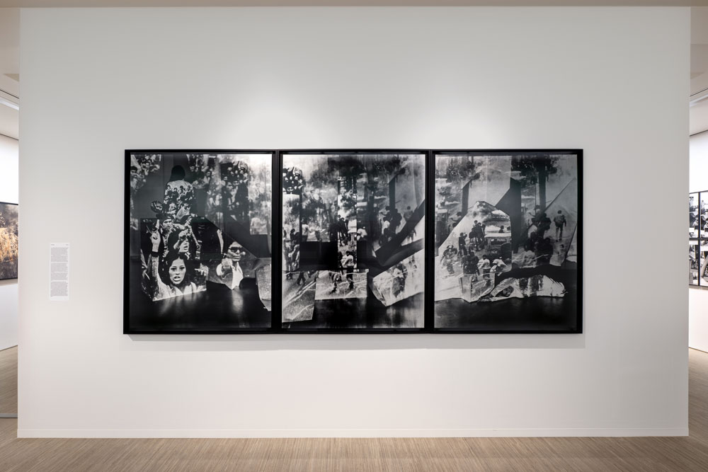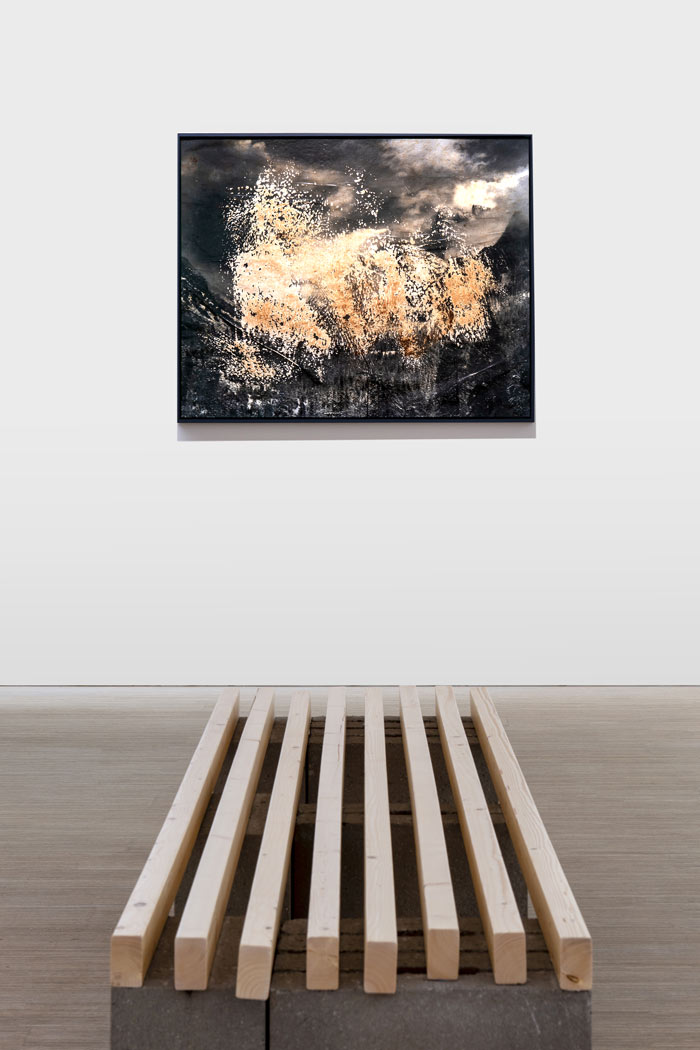 On the opposite wall, the theme of gender representation persists. Master Rituals II: Weston's Nudes operates a critical subversion of the modernist canon by confronting Edward Weston’s well-known photographic series. By reenacting the poses of models such as Sonya Noskowiak, Bertha Wardell, Fay Fuqua, Charis Wilson, and Miriam Lerner, Krajnak highlights the collaborative nature of the photographic act. With the shutter release and light meter in view, Krajnak positions herself as both subject and author, challenging the masculine, Western, and normative gaze that informed the original work. The artist deconstructs Weston’s formal rigor by including elements the photographer chose to omit: faces, gazes, and the physical structure of the studio itself, using bricks and wooden blocks to expose the artificiality of the composition. However, the series is not limited to a political reimagining of Nudes: weaving her practice into a spiral of references, Krajnak reinterprets Robert Mapplethorpe’s emblematic Self Portrait (1975). The artist updates the photographer’s horizontal gesture in an operation of both approximation and rupture. If the citation celebrates the defiance of heteronormativity embodied by Mapplethorpe, the presence of the photometer in Krajnak’s right hand functions as a critical counterpoint: this act reaffirms the autonomy of self-representation, questioning the centrality of the masculine in the photographer’s work. Another canon deconstructed by Krajnak is that of landscape photography. The body of work titled Tarrah Krajnak's Ansel Adams' Clearing Winter Storm, Yosemite National Park subverts the legacy of Ansel Adams, confronting the triumphalist narrative of the American West with a visceral reimagining—a quality that counters the meticulous rigor of Adams’ photographic technique. In a video, the original text from the book Examples: The Making of 40 Photographs is redacted. This piece is shown alongside a panel where the artist superimposes her own images onto those of Adams. Across the gallery, through a fragmentary spatial arrangement, the iconic photograph Clearing Winter Storm undergoes a radical intervention: using her own hair, Krajnak disfigures Adams’ pristine landscape, reinserting the human presence deliberately erased in his photographic records. In Aymara — a language of the Andes region — the expression wut walanti conveys the sense of something “irreparable.” [8] The artist demonstrates how photography itself can be an instrument of power that seeks to mask the irreparable: the systemic violence endured by Indigenous peoples during the U.S. westward expansion. Finally, in a narrow corridor, lies the most introspective work of the exhibition: Black Messengers is inspired by the collection of poems Los Heraldos Negros by César Vallejo. Returning to literature, this work inverts the Peruvian writer’s artistic endeavor. Situated in the early 20th century, Vallejo engaged with the international avant-garde while delving into the internal tensions of the human condition—a hallmark of peripheral modernity. Krajnak states that as a photographer, she seeks to externalize these conflicts by turning the lens toward the world. The series consists of 35mm photographs taken at Indigenous ruins and archaeological sites scattered between Peru and the United States. These small-scale images renders them like brief notations—singular, fleeting commentaries on the fragile vestiges of the landscape: animals, shadows, textures, objects, and rocks. In a passage from the poem Las Piedras, Vallejo writes: