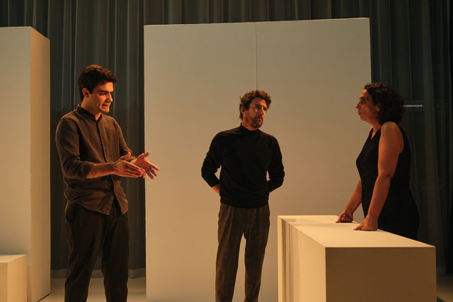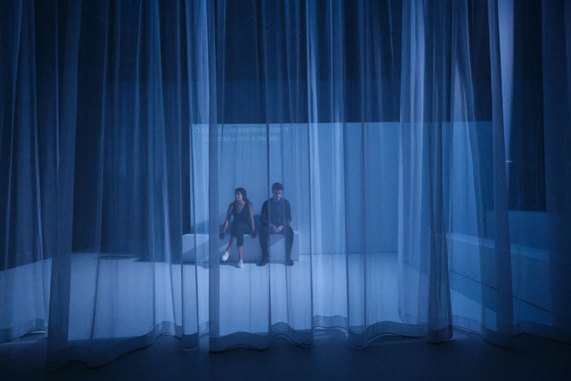 GG: Esta peça não tem uma pretensão sociológica, não pretendemos com este espectáculo representar o silêncio no nosso mundo, ou fazer uma espécie dos silêncios sociais que habitamos. Uma coisa é evidente: aquelas cenas tomam forma no nosso mundo. Por outras palavras, reconheces aquelas situações e aquelas personagens. Podias ser tu, ou alguém que tu conheces. Quando eu e o Cédric nos conhecemos começamos logo a trocar ideias sobre teatro, a partilhar experiências que tínhamos ao nível da criação teatral. Fomos ver espectáculos um do outro e reconhecemo-nos mutuamente. O encontro com o outro possibilita conheceres-te a ti próprio. Os encontros com pessoas novas provocam isso mesmo. Uma das coisas que reconhecemos foi que o silêncio tinha muita importância para nós enquanto criadores. Se o silêncio tem esta importância, vamos começar por pensar sobre isto, e à medida que fomos avançado, elencávamos uma série de ideias construindo uma espécie de antologia de cenas onde o silêncio tem a qualidade de provocar, de conflito. O silêncio é o berço das cenas, mas não é a sua exposição. Silêncio não é sobre silêncio, surge talvez do silêncio, ou vai resultar no silêncio. Sinto muitas vezes que o grande protagonista do espectáculo é o oposto do silêncio… O ruído talvez. O ruído porque tem em si um discurso criado sobre o silêncio. Cenicamente, colocámos diferentes camadas de separação entre o espectador e o espectáculo, uma das camadas é por exemplo a língua. O espectáculo é falado em português e em francês. O ruído acaba por ser o grande protagonista e chama-se Silêncio para que possamos olhar para a peça como um convite à procura do silêncio. O título cria no espectador o desejo de silêncio, e quando vê o espectáculo, está já com essa expectativa — existem personagens desta peça que vão ao encontro dessa expectativa.