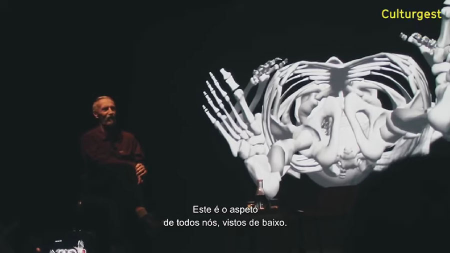 Conferência de Steve Paxton na Culturgest, a propósito da exposição “Esboços de Técnicas Interiores”. Stills de vídeo no canal Youtube da Culturgest, 2019.