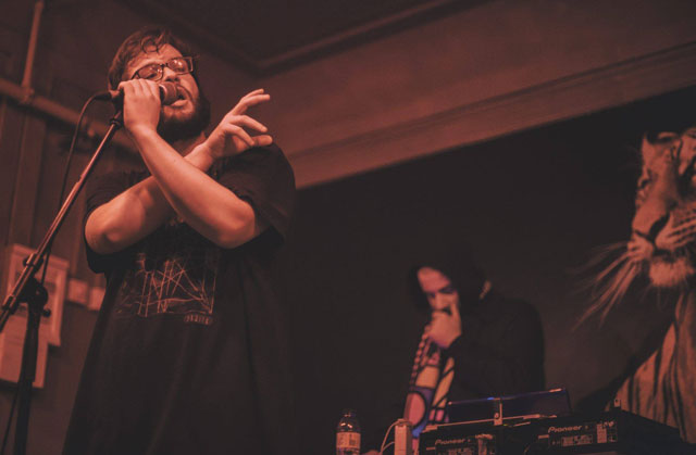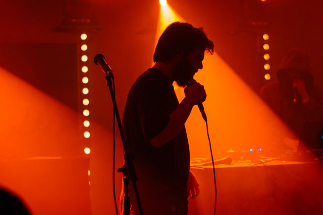 Como artista de palco, Caronte estrou-se no Damas. Conta-se que foi uma belíssima noite de estreia. Tendo sido apresentado por VULTO., após os sets dos mais antigos membros dos Colónia, Caronte cantou «Miguel» e fundiu-se com o eflúvio de suor e cerveja como se sempre tivesse feito parte dele. Nessa noite, não estive presente; mas lembro-me bastante bem do meu primeiro contacto com Caronte. Foi no Anjos 70. Nas noites de deambulação, o Anjos 70 nunca era o princípio ou o fim da linha. Demasiado cheio ou vazio: é assim que me lembro do sítio. Na noite de Caronte, não estava nem cheio nem vazio. E, surpreendentemente, não cheirava sequer a suor. O público, maioritariamente formado por hipsters cheirosos que admiram os Capitão Fausto, torneava Caronte e VULTO. com tímidos tombos de cabeça. E enquanto Caronte se arrastava pelas sombrias melopeias, VULTO. gritava: «HIP-HOP TUGA!». Um amigo que levei comigo não ficou especialmente impressionado com os gritos de VULTO., e encontrou neles um cinismo esteticamente inapropriado; um cinismo que – como quase todos os cinismos – não acrescenta nada e ainda tira alguma coisa. Concordo com esse meu amigo; os gritos de VULTO. foram anticlimáticos. Mas denunciaram uma atitude defensiva que me interessou, porque me pareceu em parte justificada: aquele não era o público de Caronte, e a acústica do Anjos 70 não fazia jus à sua voz. Do cinismo de VULTO. surdia o reconhecimento de que ele e Caronte estavam deslocados, ali dispostos no centro de uma sala de jantar vintage como entretenimento para encontros de Tinder (contra o ego de VULTO., os fãs dos Capitão Fausto pareciam de facto muito entretidos por aquele hip-hop tuga tão mais intelectual do que o de Sam the Kid; e, pondo-me no lugar deles, Caronte parecia quase um Halloween branco que trocava a Póvoa de Santo Adrião pela Almirante Reis). É verdade que o concerto não foi bom, mas foi sem dúvida interessante; tendo-me apresentado a Caronte e à atitude refrescante dos Colónia.